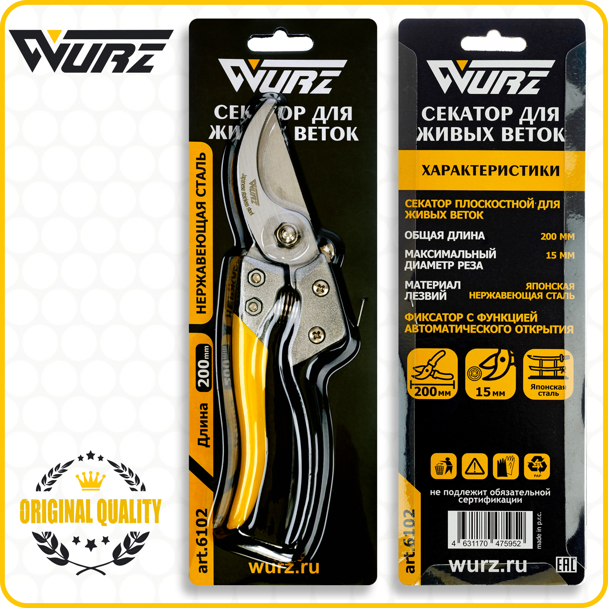 Секатор садовый, срез до 15мм, для кустов 200мм Wurz 6102 информация: