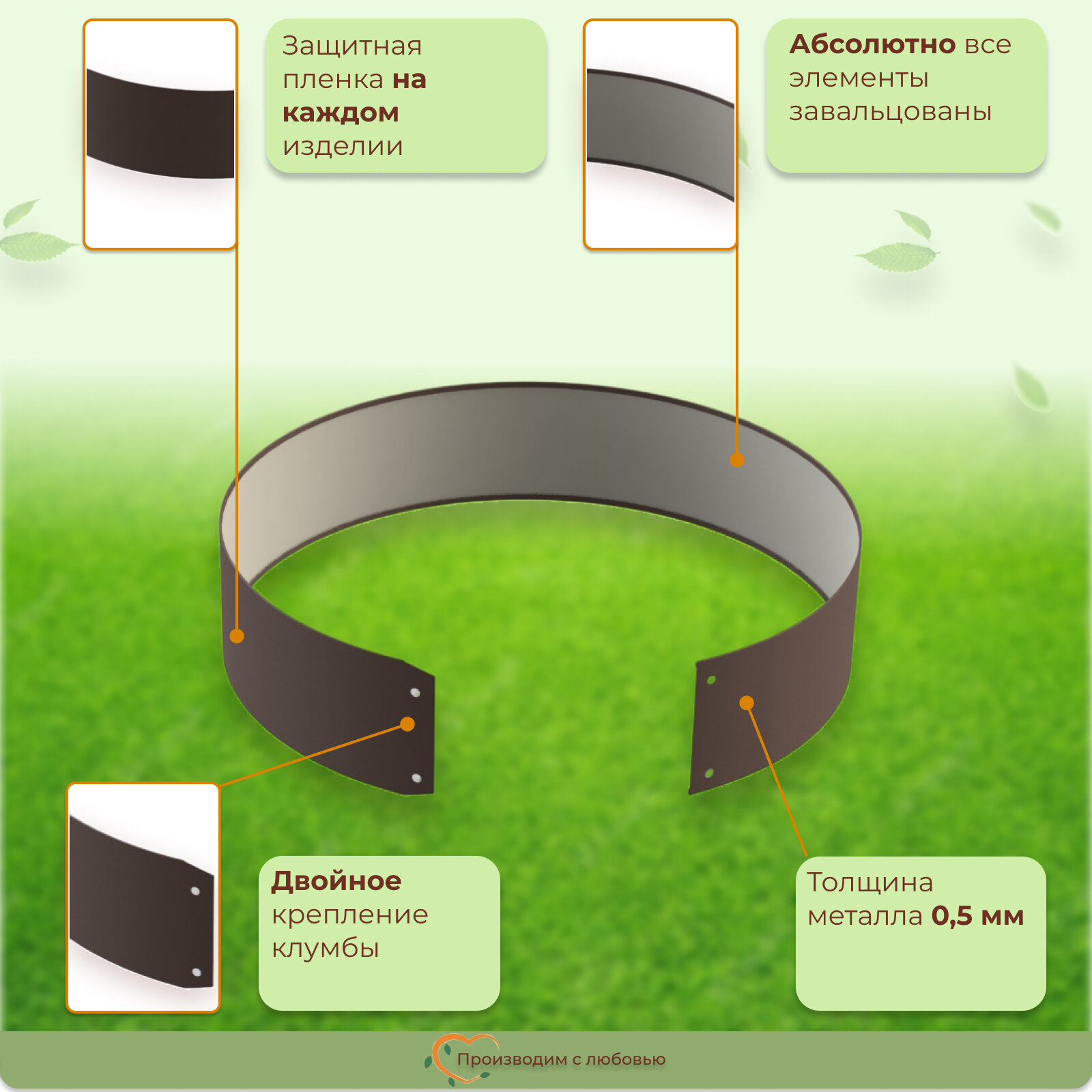 Грядка оцинкованная с полимерным покрытием овальная 3 шт., 3.3х0.6 м, высота 16 см, цвет Шоколад 8 500 ₽