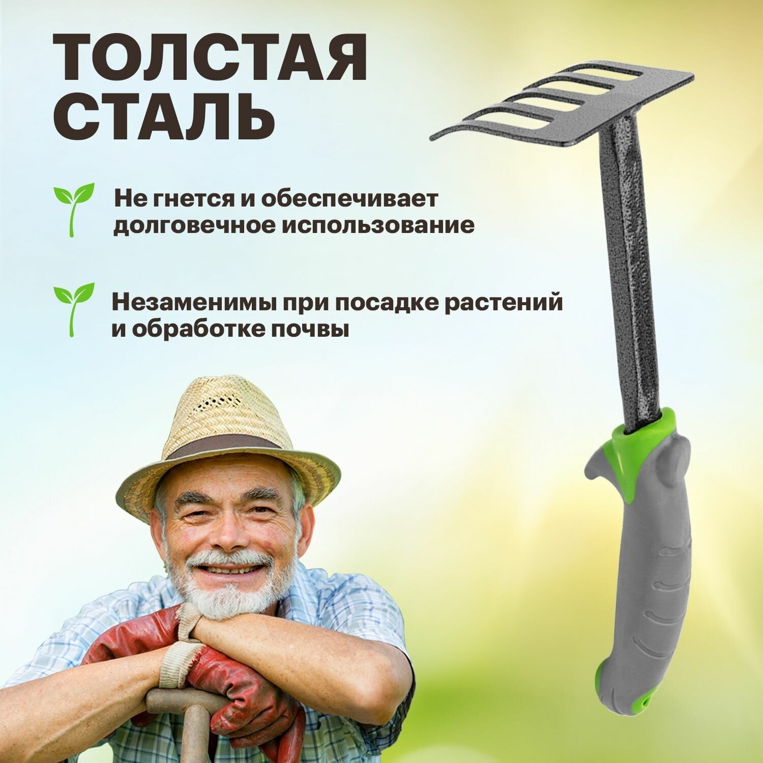 Отзывы на Грабли садовые мини штыревые четыре сезона с черенком и прорезиненной ручкой