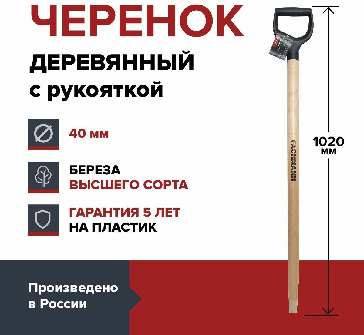 Черенок деревянный с красной ручкой FACHMANN D40 мм, L 102,5 см, лакированный, для лопаты, береза высший сорт