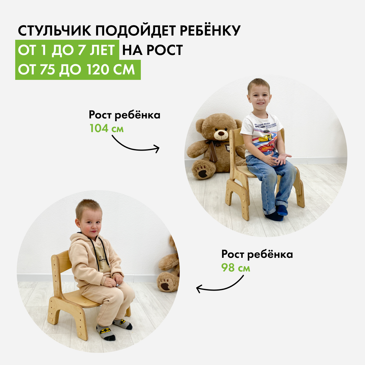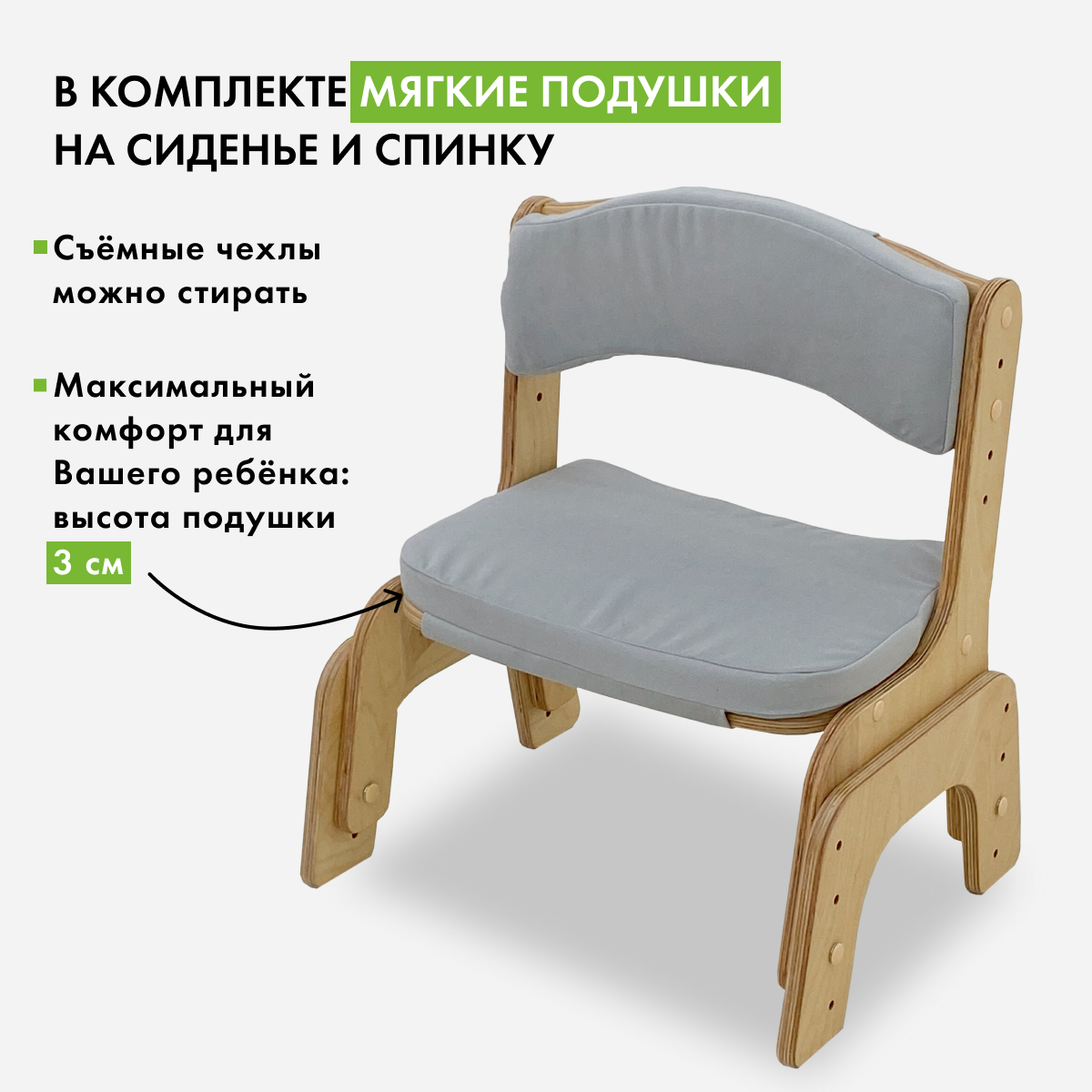 Отзывы на Детский стульчик Малышок, прозрачное масло, светло-серые подушки