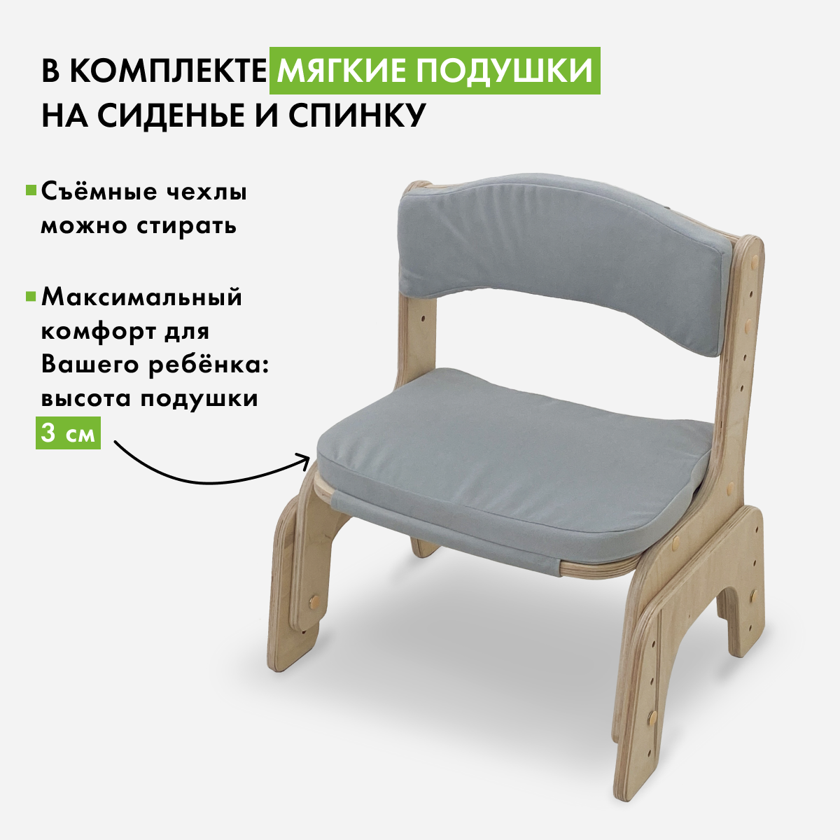 Детский стульчик Малышок, без покрытия, светло-серые подушки информация: