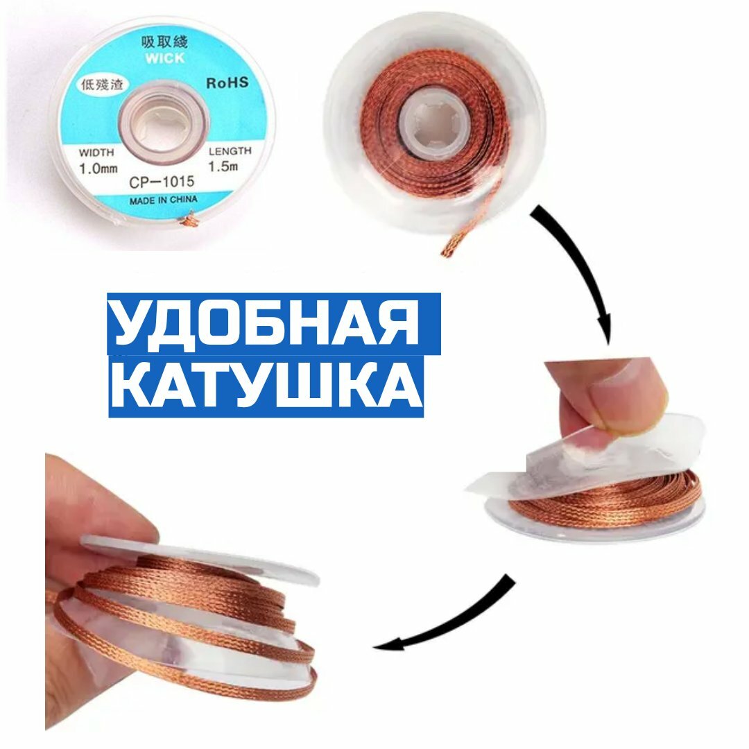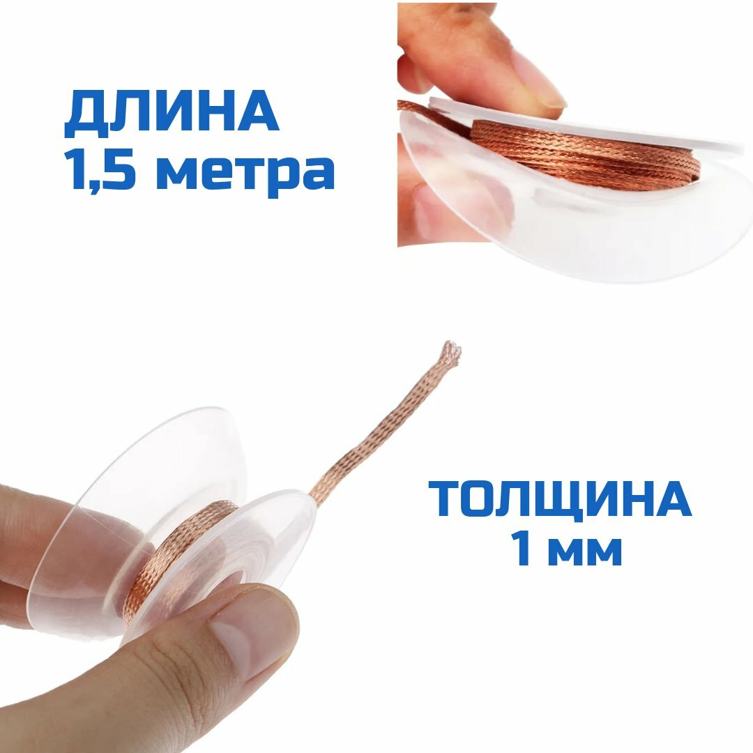 Медная оплетка для удаления припоя. 1,5мм х 1,5м. Инструмент для пайки 281 ₽