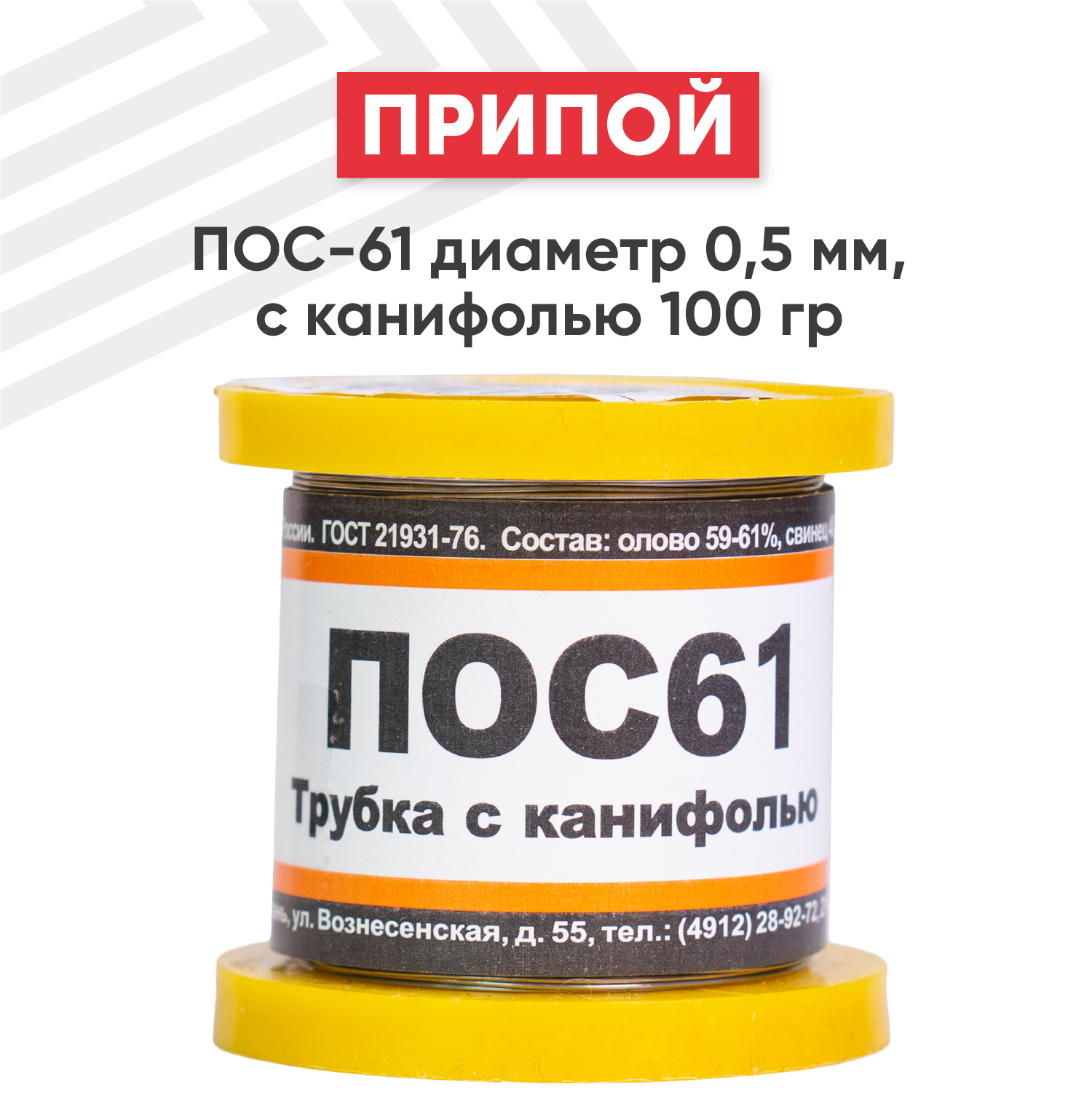 10 цен на Припой ПОС-61 диаметром 0.5 мм, с канифолью 100 гр.