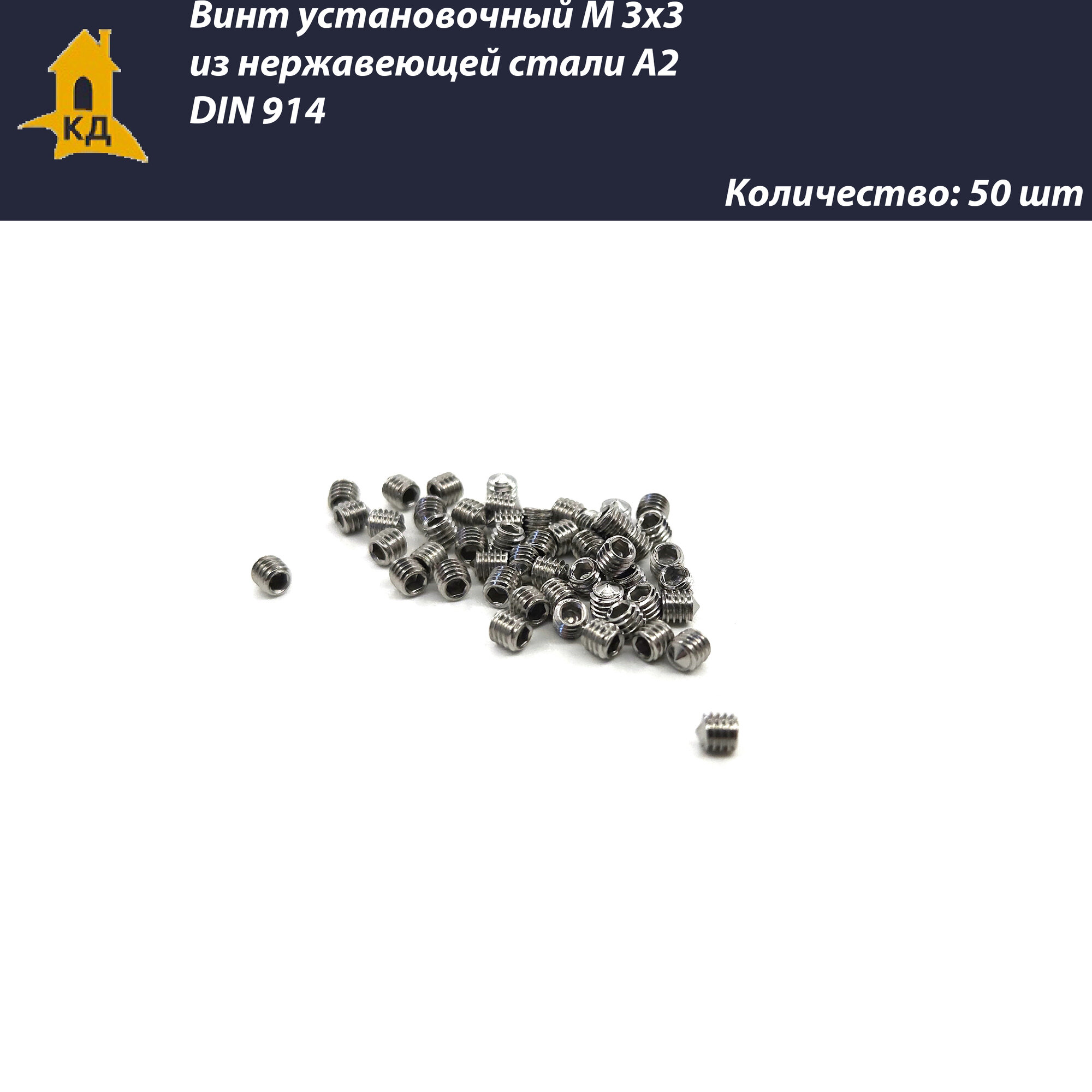 Винт установочный М 3х3 из нержавеющей стали А2, DIN 914, 50 шт. информация: