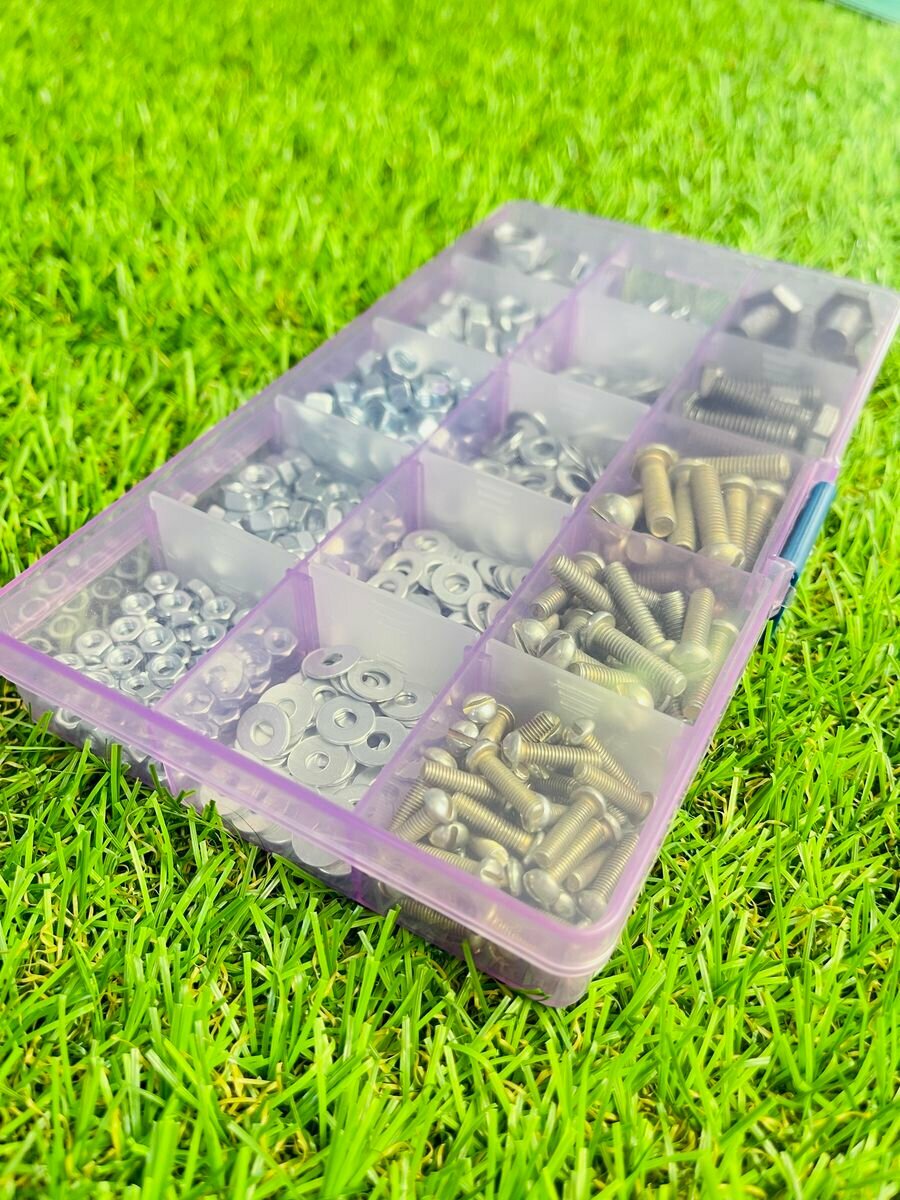 | Подробная комплектация | 15 видов крепежа в пластиковом боксе |