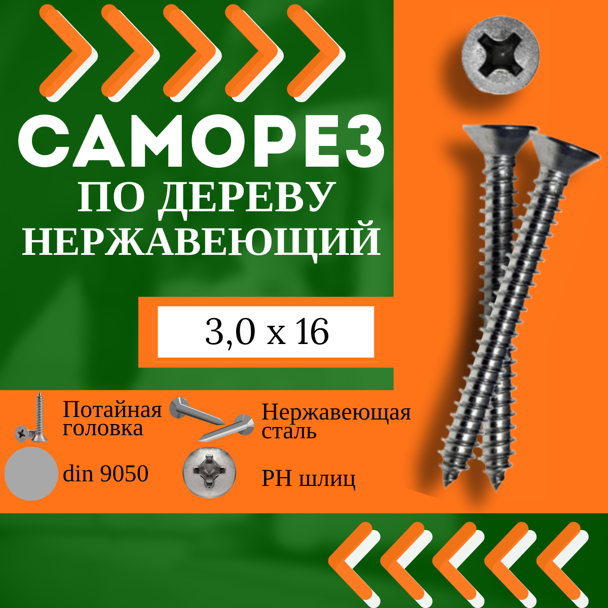 Саморез нержавеющий (А2) по дереву DIN 9050 - 3,0х16, 50 шт. информация: