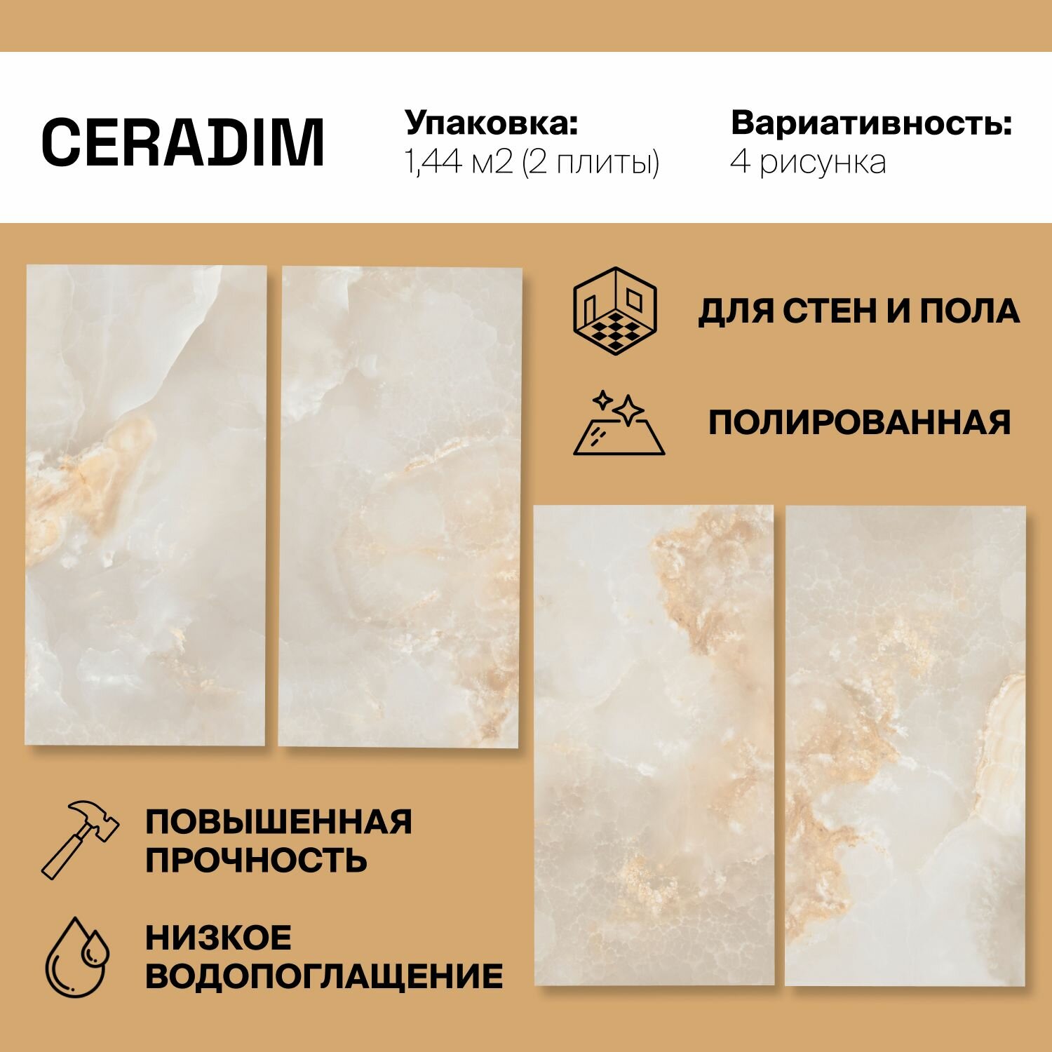 Керамогранит Ceradim Onyx Orlam бежевый 60х120 Полированный, уп. 1.44 м2. (2 плитки) информация:
