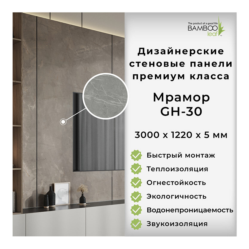 Дизайнерские бамбуковые стеновые панели премиум класса, Мрамор GH-30 информация: