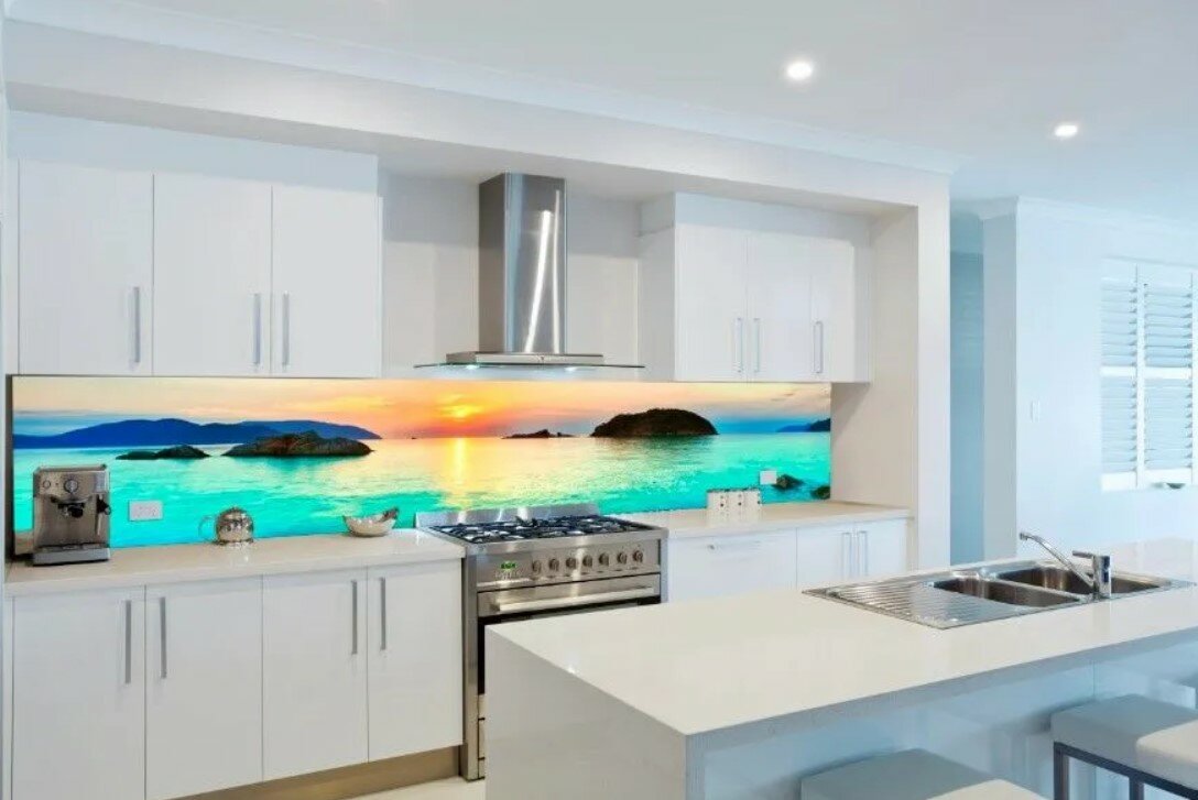 Отзывы на Фартук для кухни из АБС пластика 2000*600*1,5мм. Кухонный фартук ABS с фотопечатью "Восход над морем"