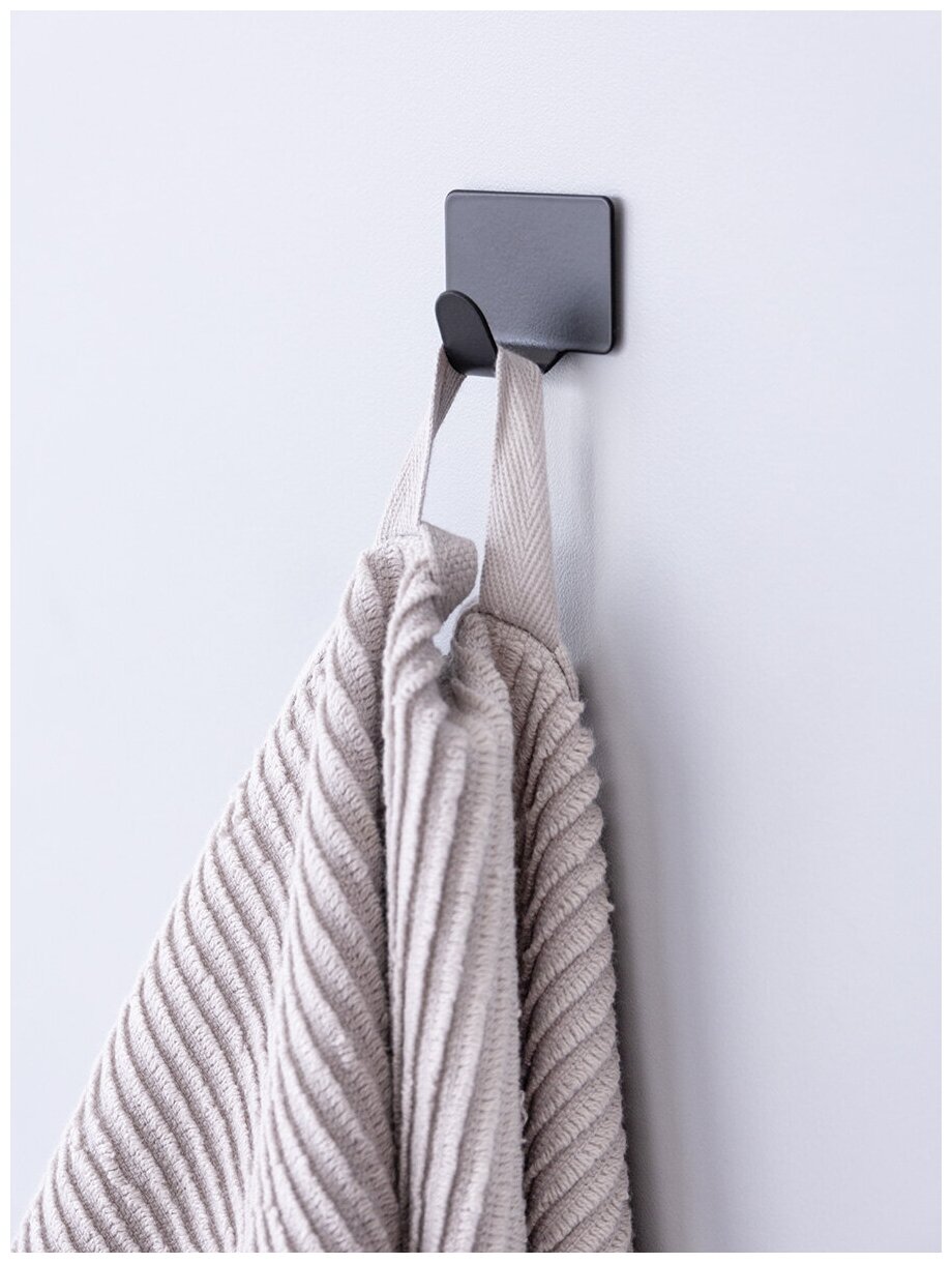 Крючок настенный самоклеящийся / металлический для кухни и ванны / черный / 2 штуки