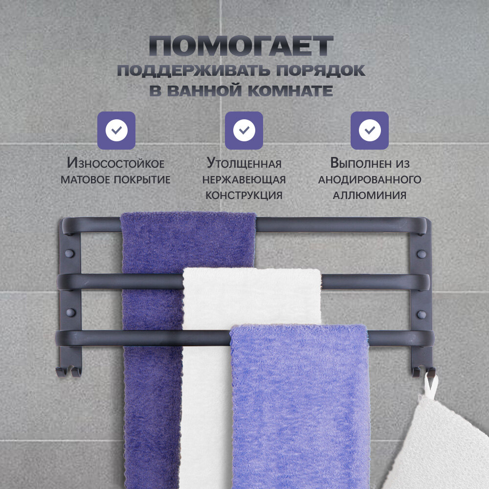 Держатель для полотенец в ванную, 3 уровня, черный информация:
