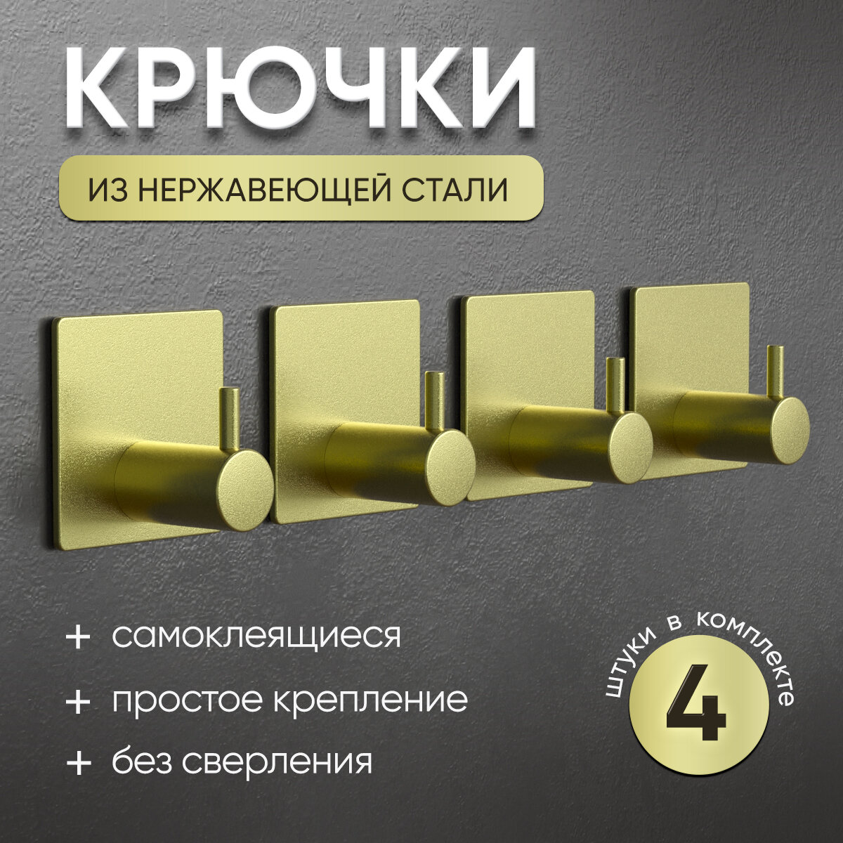 Крючки настенные самоклеящиеся золотые информация: