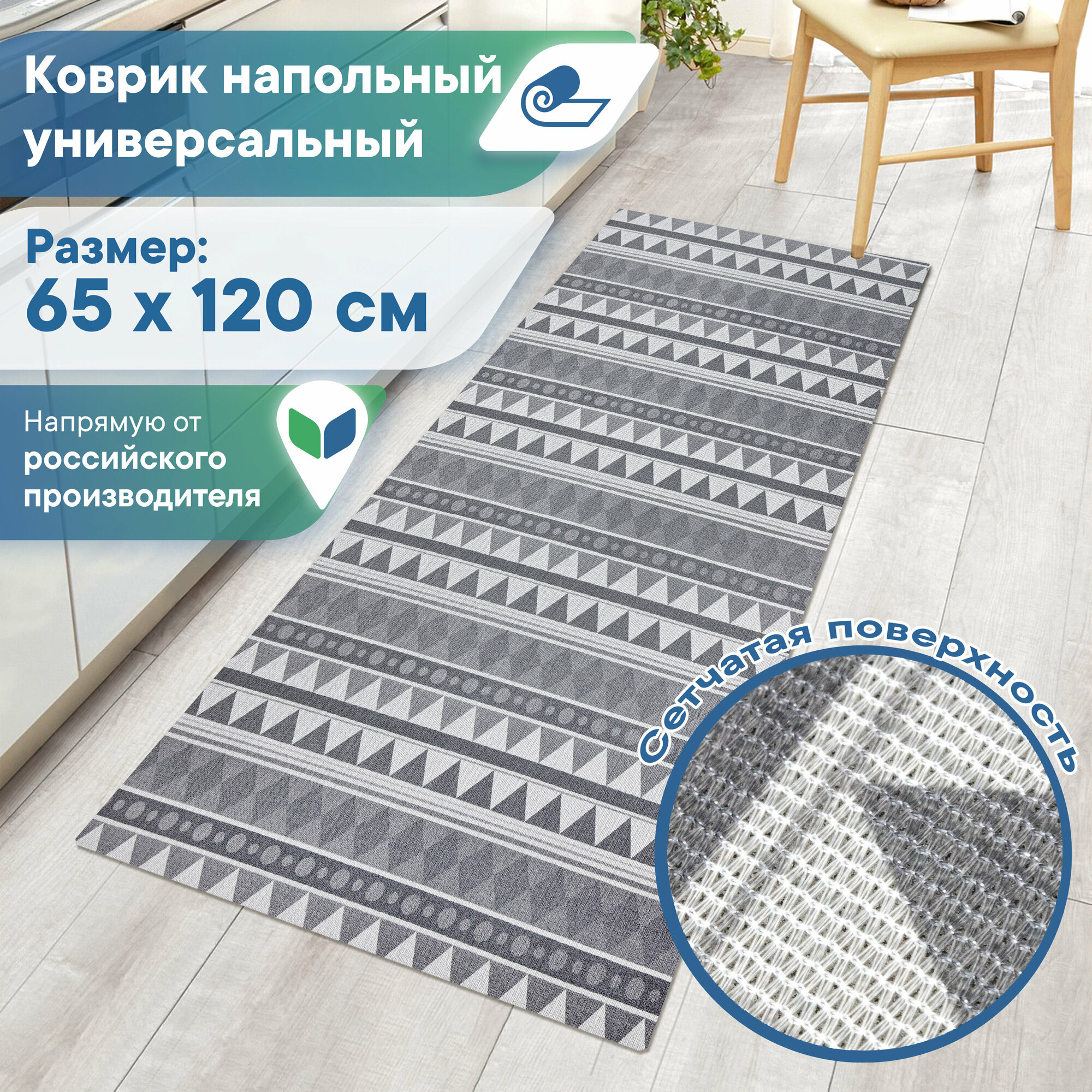 Коврик напольный противоскользящий VILINA мягкий безворсовый для ванной для туалета в комнату 65х120 см "Элемент" серый 840 ₽