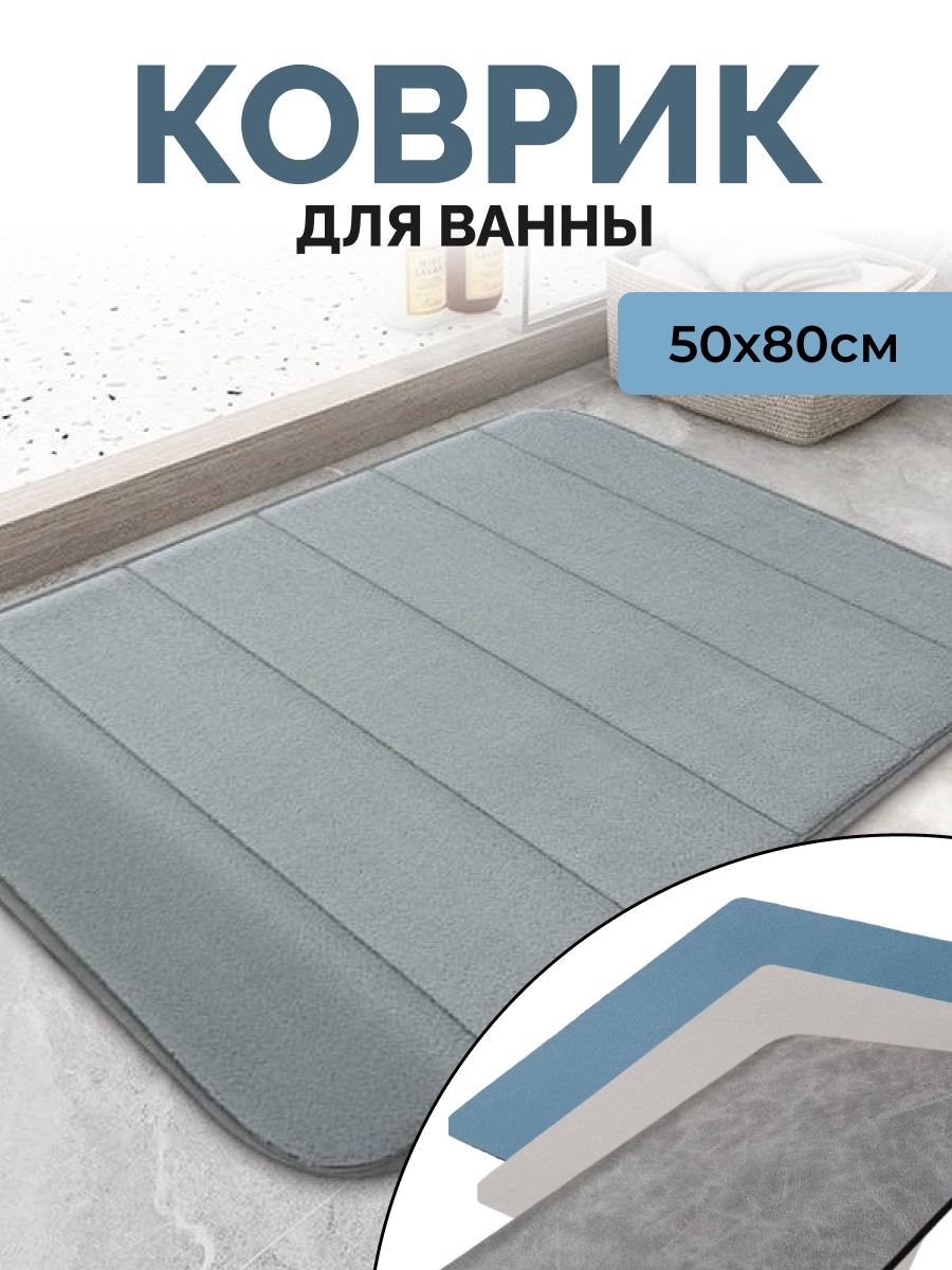 Отзывы на Коврик для ванной с эффектом запоминания, светло-серый, 80х50 см