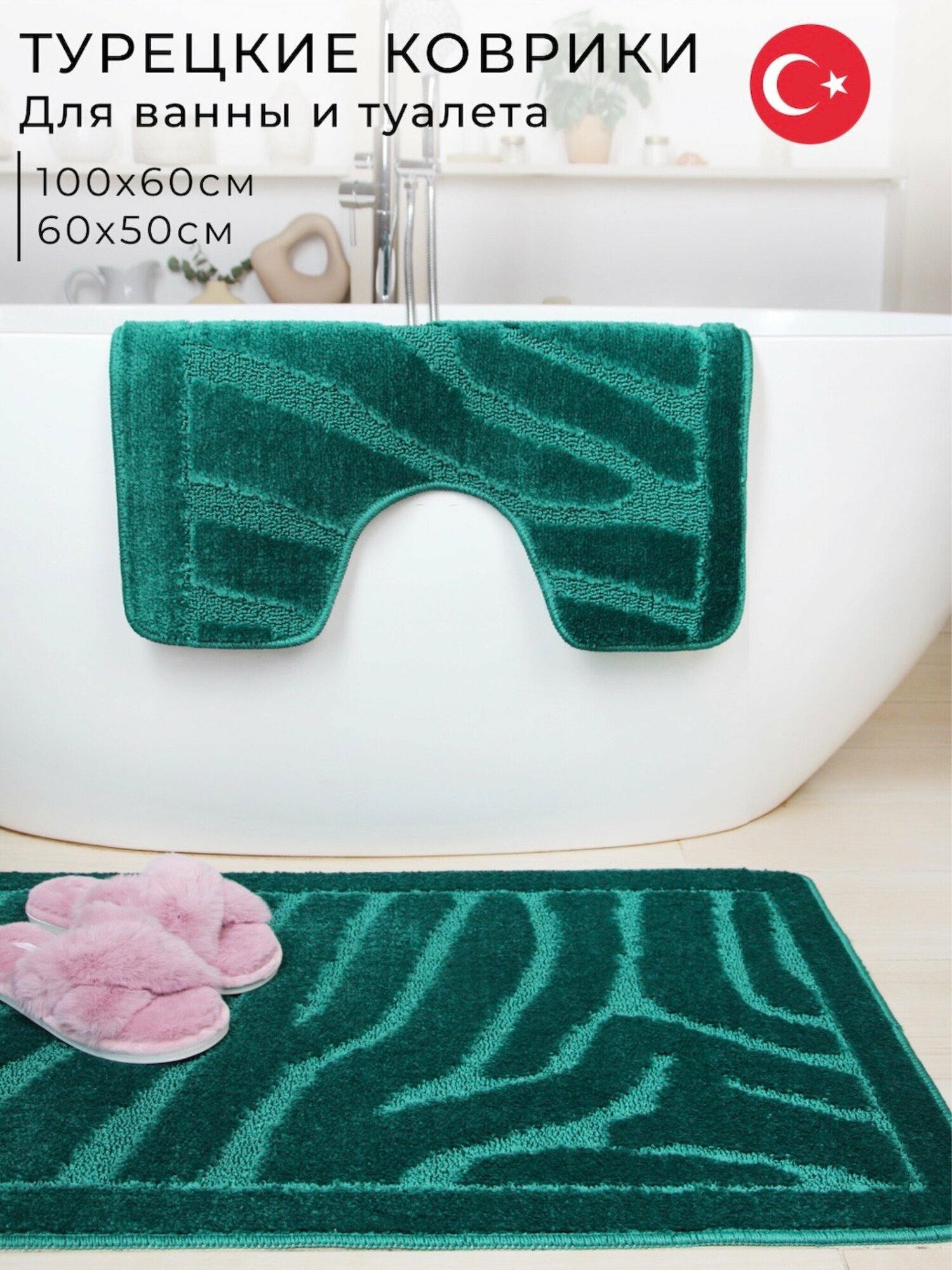 Противоскользящие коврики для ванной и туалета Vonaldi 100х60 см и 60х50 см, зеленый информация: