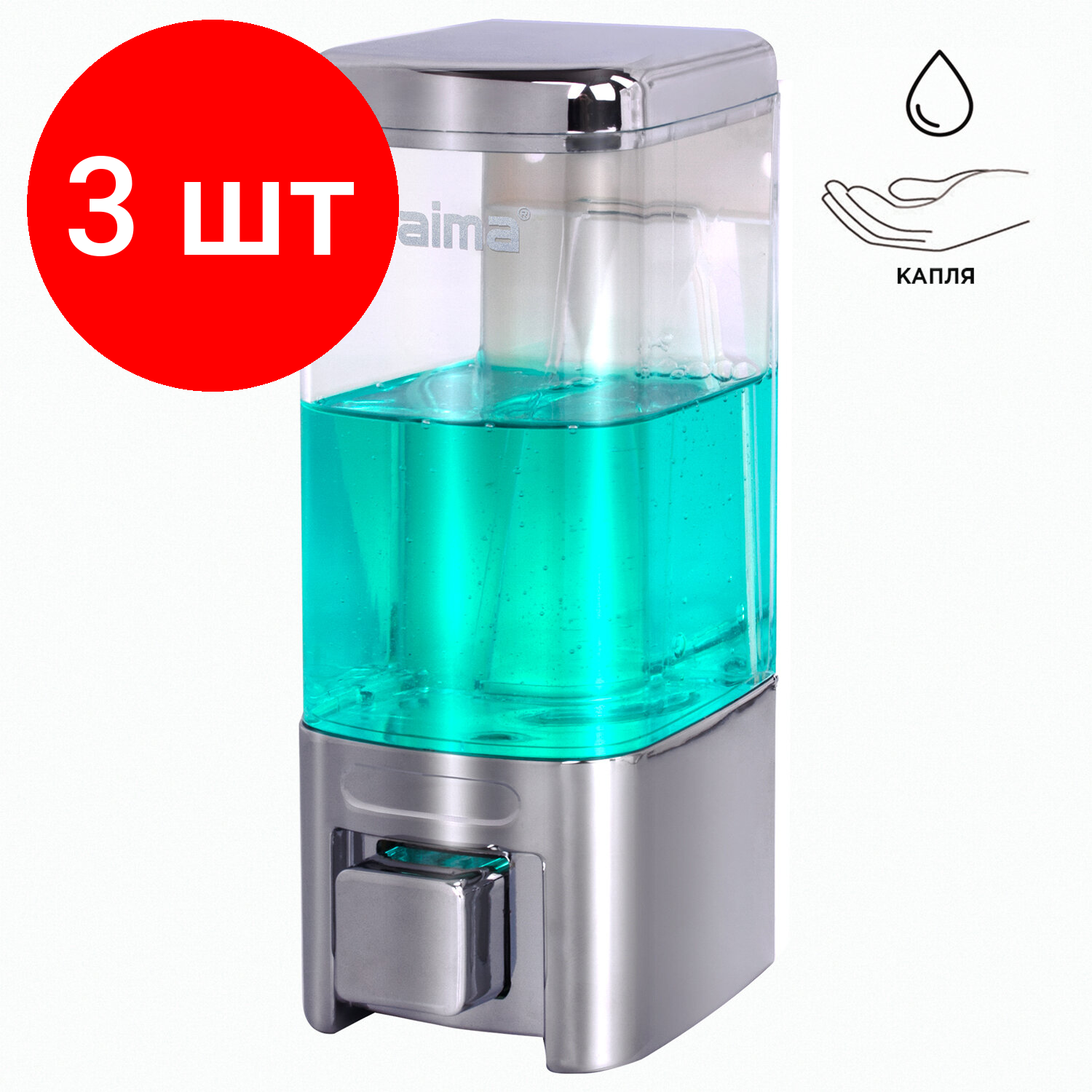 Отзывы на Комплект 3 шт, Диспенсер для жидкого мыла LAIMA, наливной, 0.48 л, хром, ABS-пластик, 605053