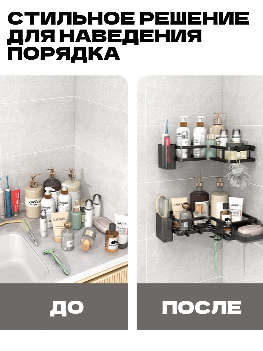 Полка для ванной и кухни угловая без сверления на липучках черная 2 шт информация: