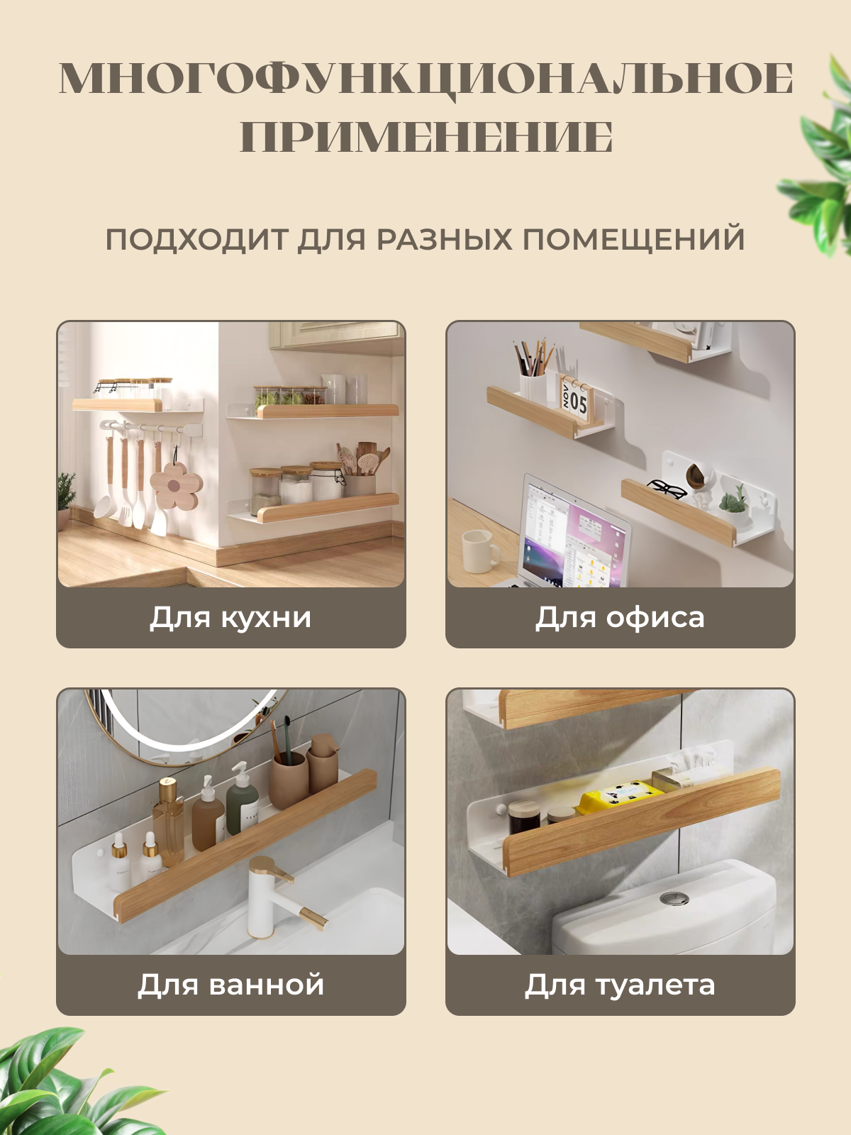 Настенная полка для ванной и кухни информация: