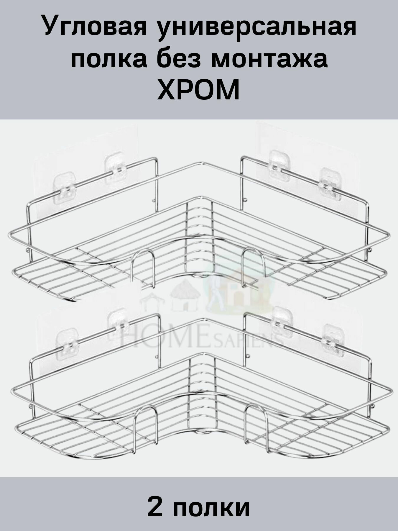 Полка самоклеящаяся ST угловая 2 штуки, цвет хром для душа, кухни информация: