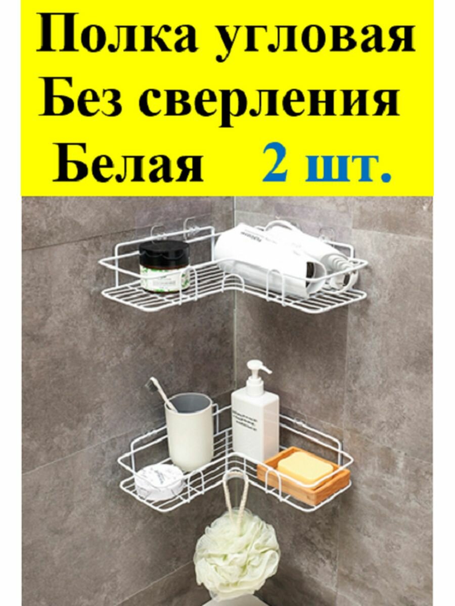 Полка для ванной, без сверления, угловая (1 шт.) цвет белый