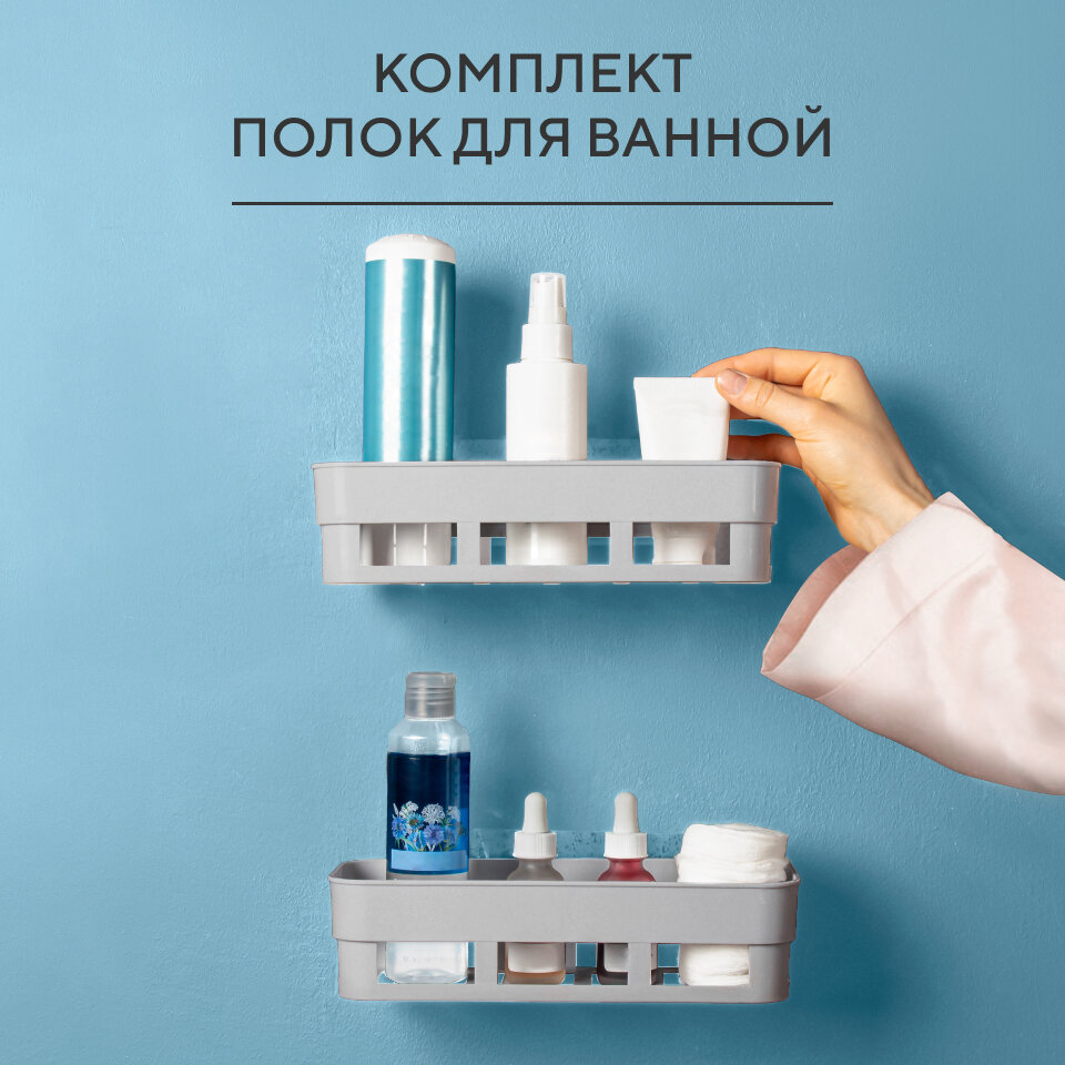 10 цен на Полка для ванной без сверления, пластиковая Hausland, серый