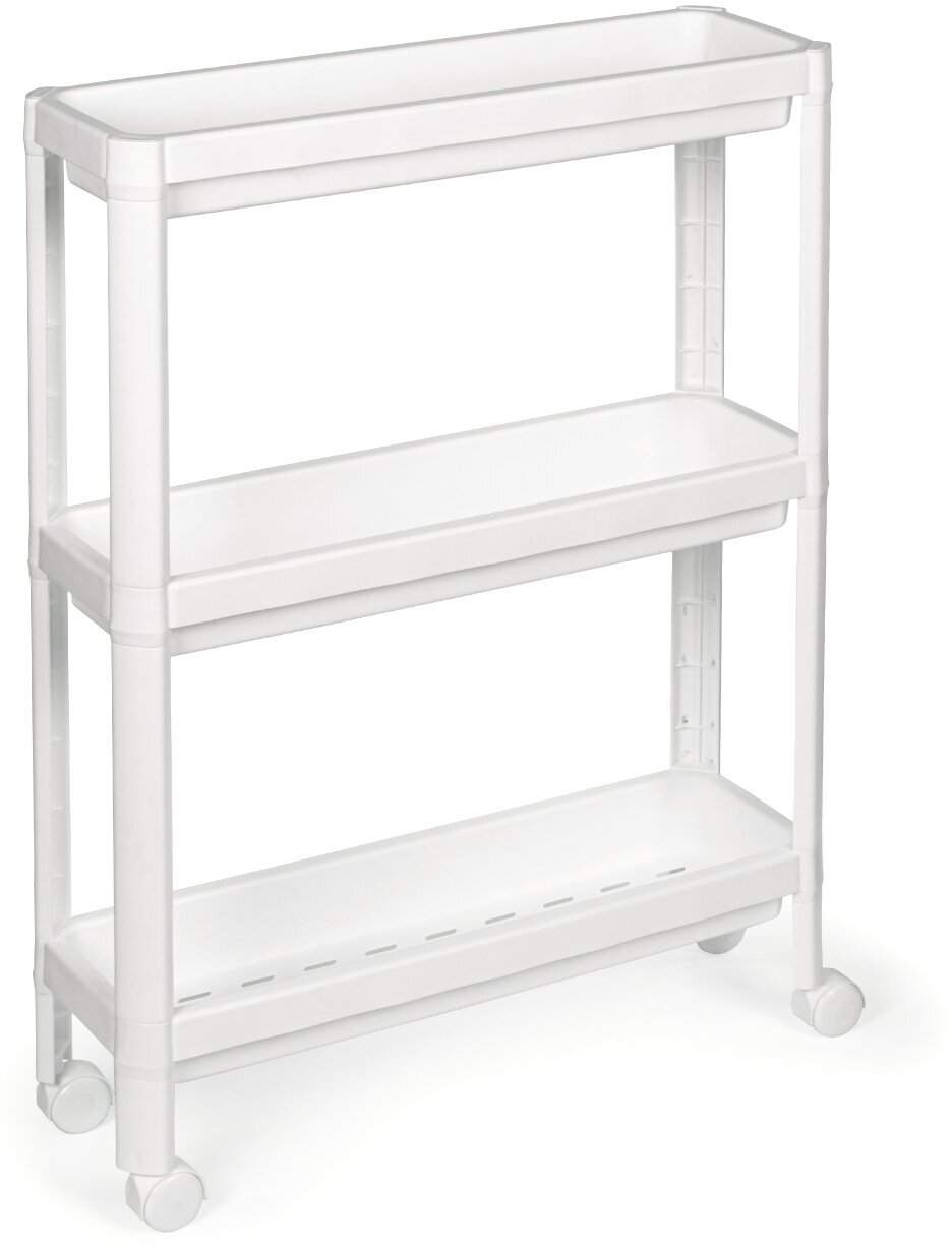 10 цен на Пластиковая этажерка-полка для ванной и кухни с 3-мя секциями, белая, на колесах, с ограничителем, 53х17х75,5 см