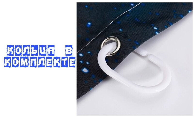 Штора (занавеска) для ванной / душа водоотталкивающая тканевая с кольцами 180 x 180 см Ужастик 2 информация: