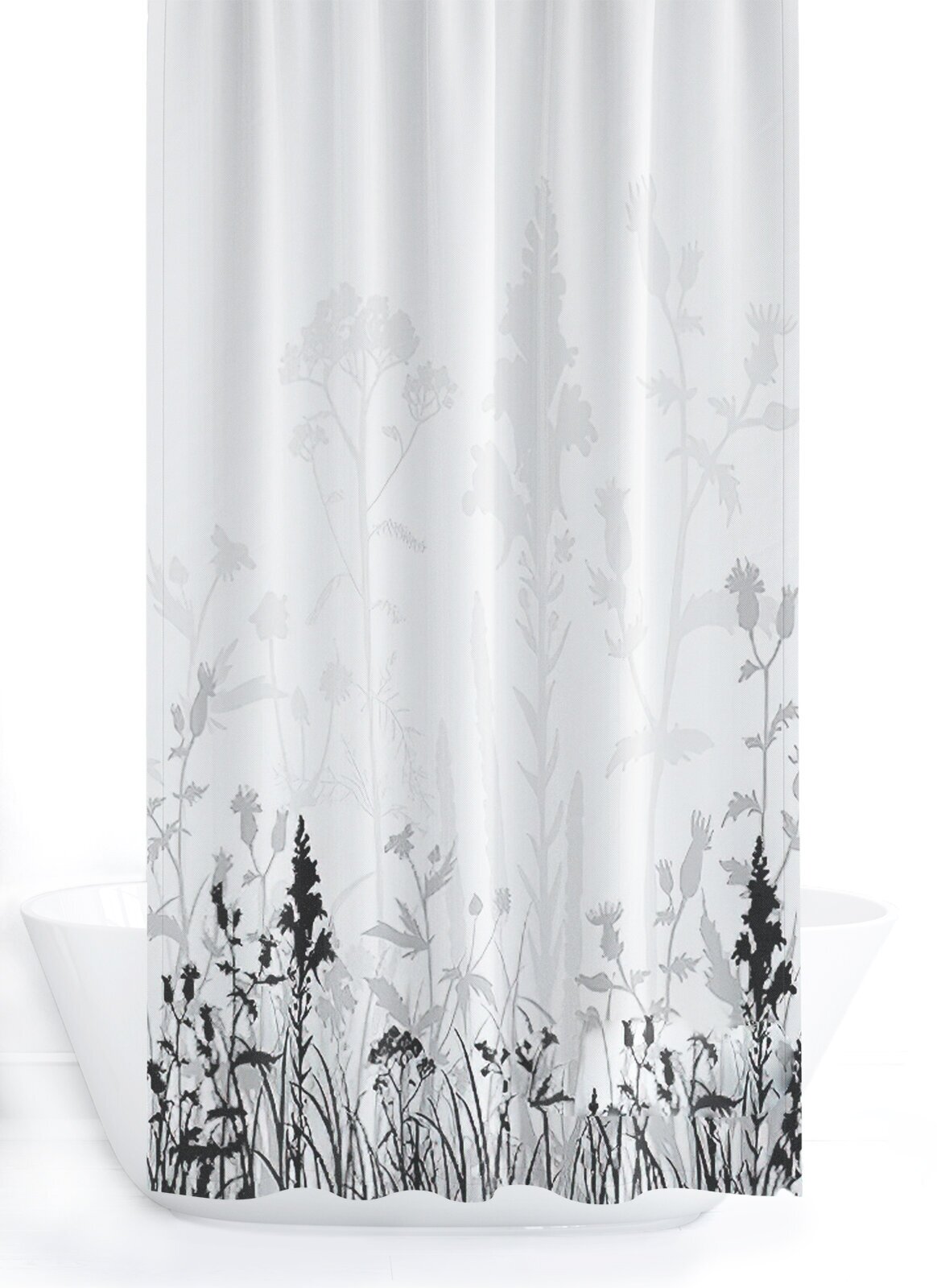 Штора для ванной занавеска водоотталкивающая 180х180 см с кольцами и люверсами с рисунком, черно-белая трава информация:
