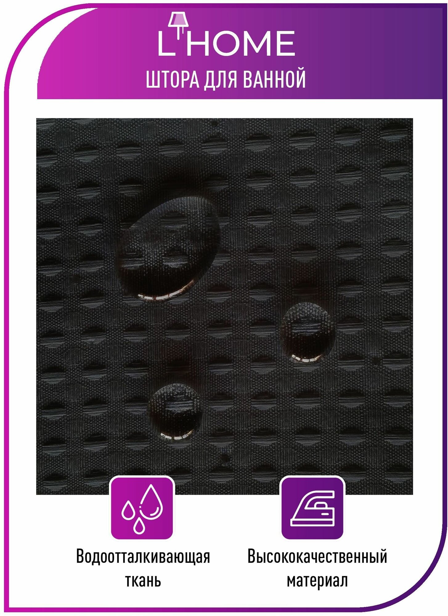 Штора для ванной и душа, 180х200 см, двойная, тканевая, водоотталкивающая, черная. Занавеска в ванную комнату с люверсами, с прозрачной вставкой информация: