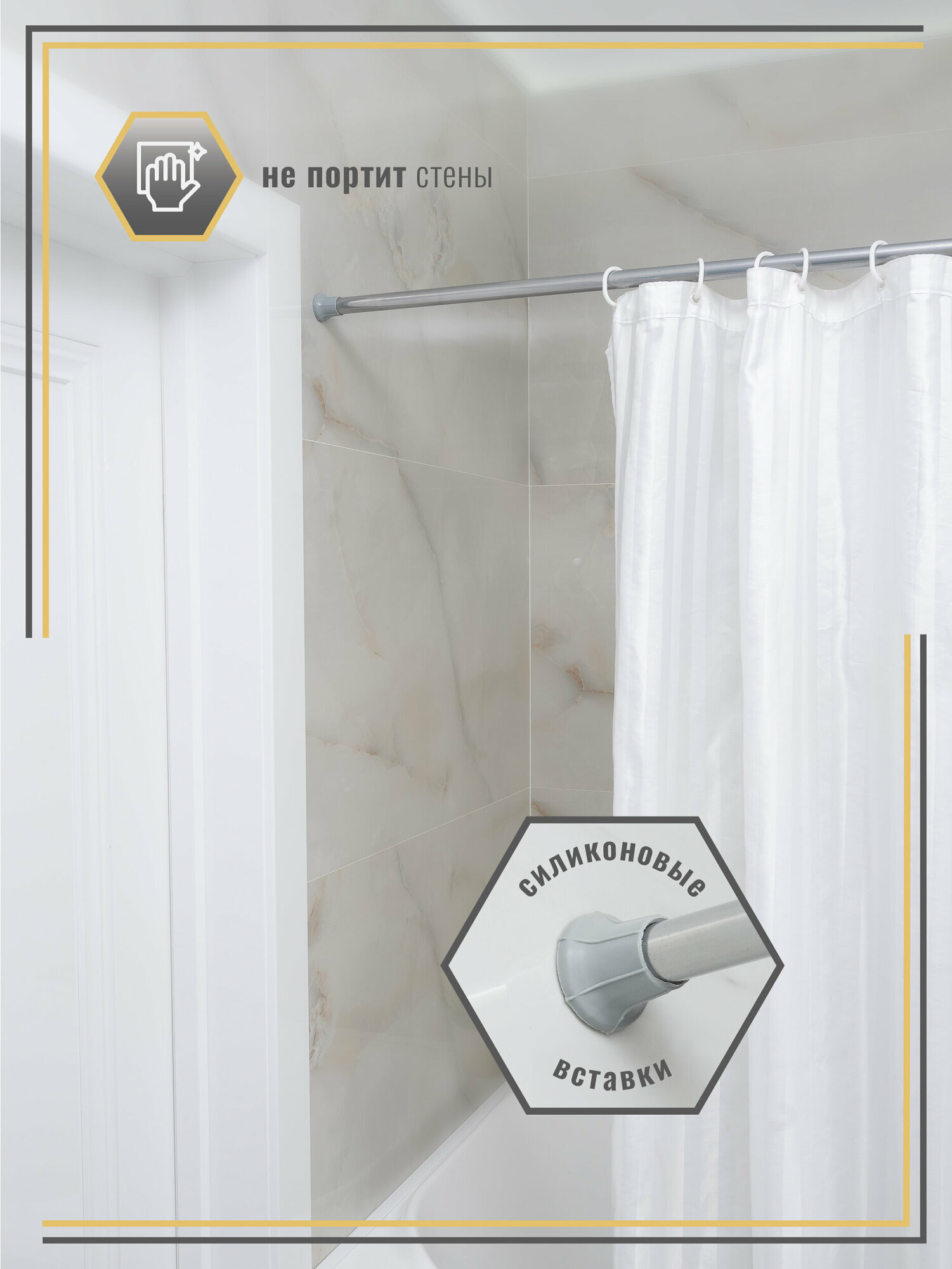 Карниз штанга для ванной металлический раздвижной / перекладина телескопическая для штор в ванную 120-210 см, серый информация: