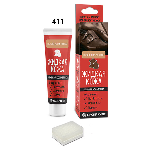 Жидкая кожа "Мастер сити ОК" для ремонта кожи 411 нежно-коричневый, туба 30 мл (красная коробка) со информация: