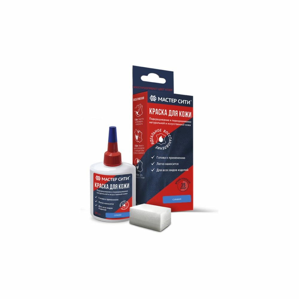 10 цен на Краска "Мастер сити" для ремонта кожи 503 синий, 30 мл (сине-красная коробка) со спонжем