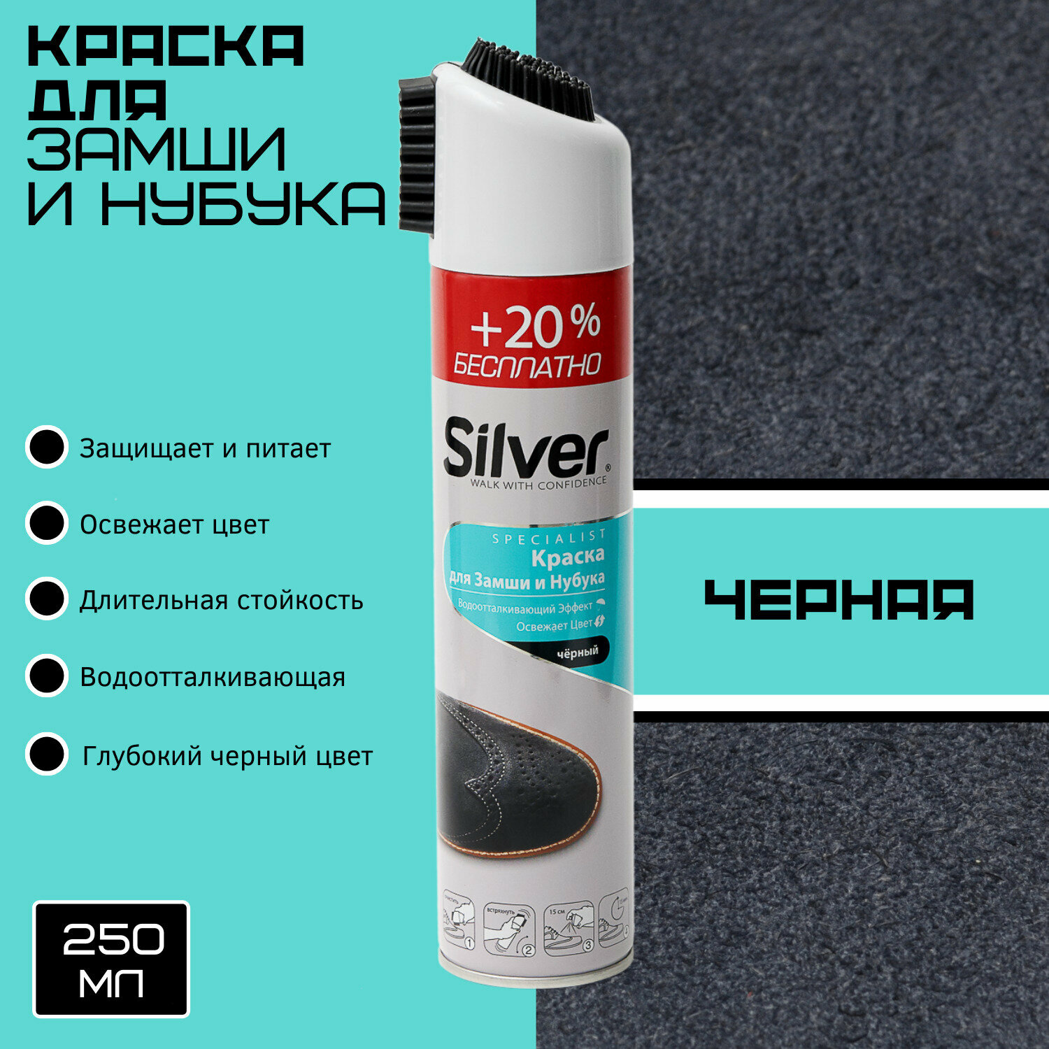 Спрей-краска SILVER для обуви и одежды из замши и нубука черный 250мл информация: