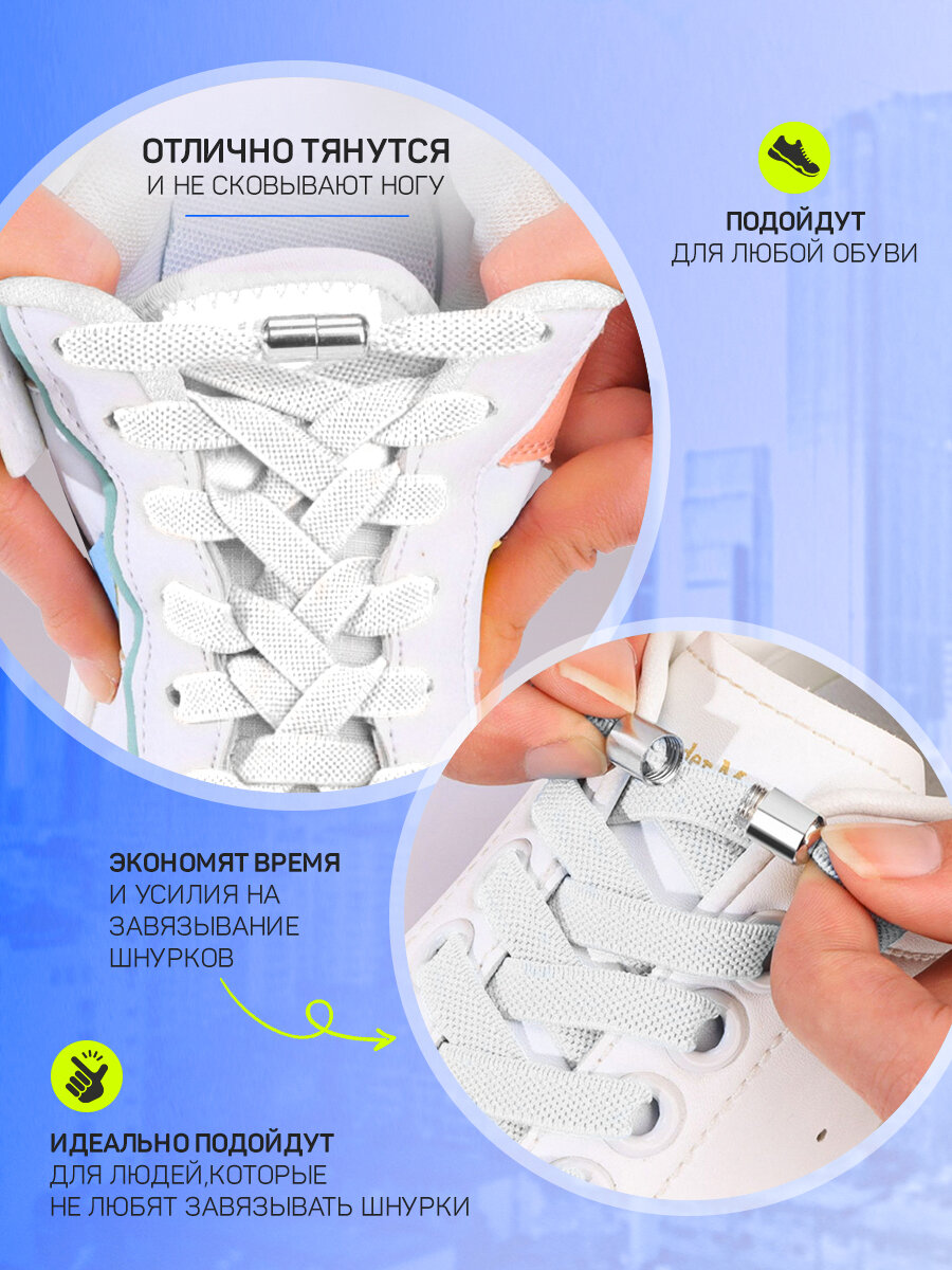 10 цен на Эластичные белые шнурки с металлическим фиксатором