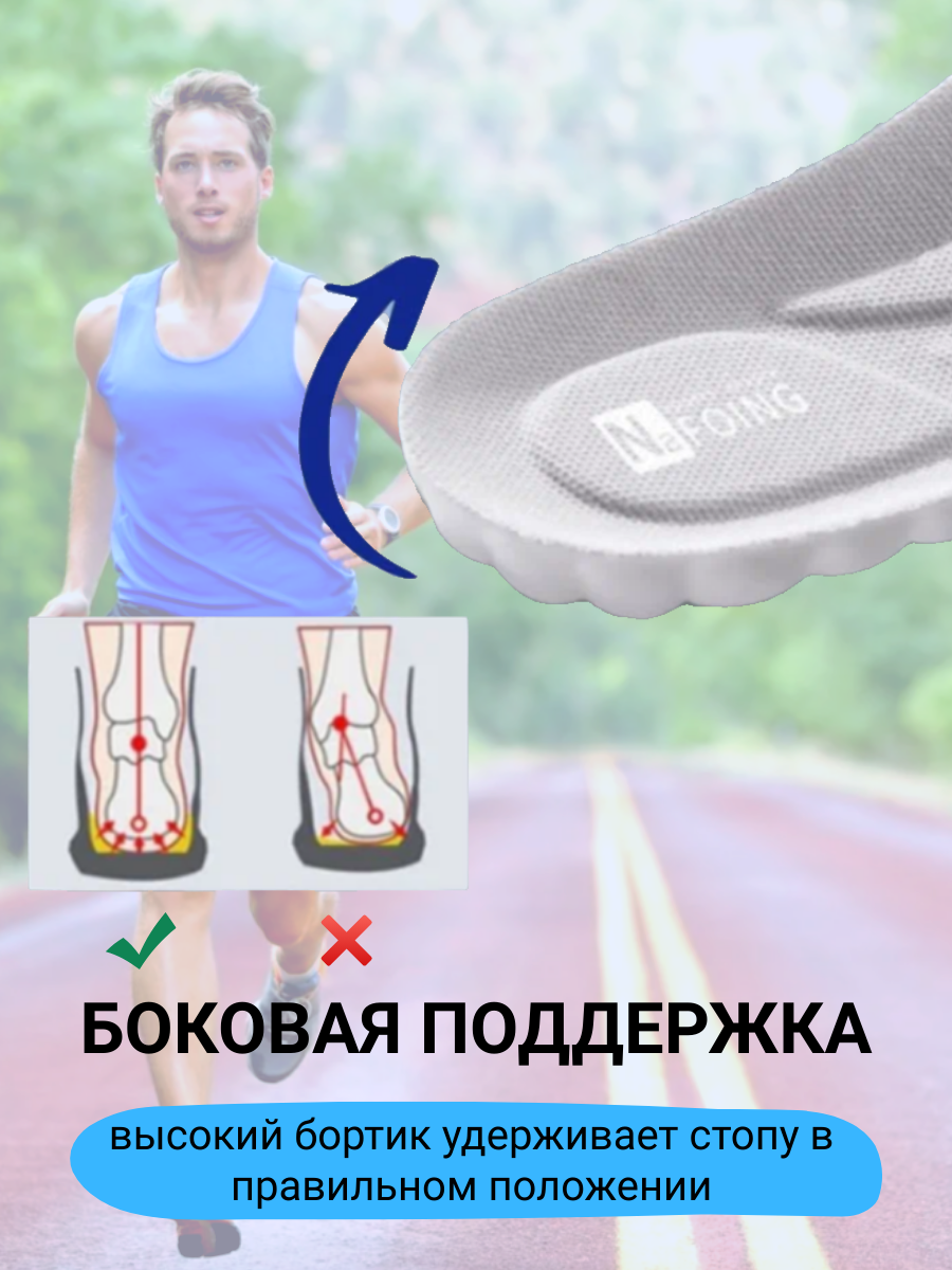 | Подробная комплектация | анатомические стельки при плоскостопии; стельки для кроссовок; аксессуары для обуви; силиконовые стельки; ортопедические при шпоре |