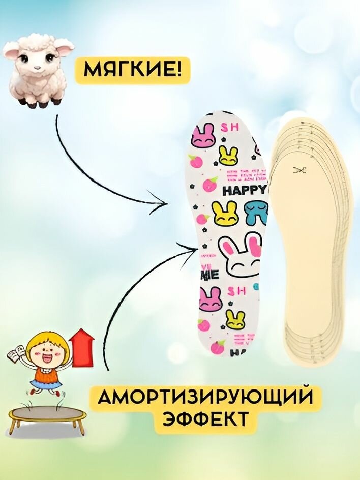 10 цен на Стельки для обуви детские антибактериальные, универсальный размер 25-36