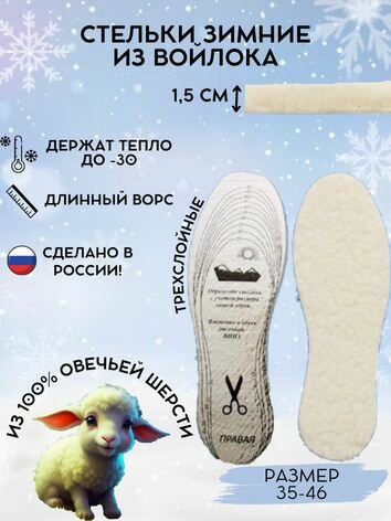 Зимние стельки с натуральной шерстью, универсальный размер 310 ₽