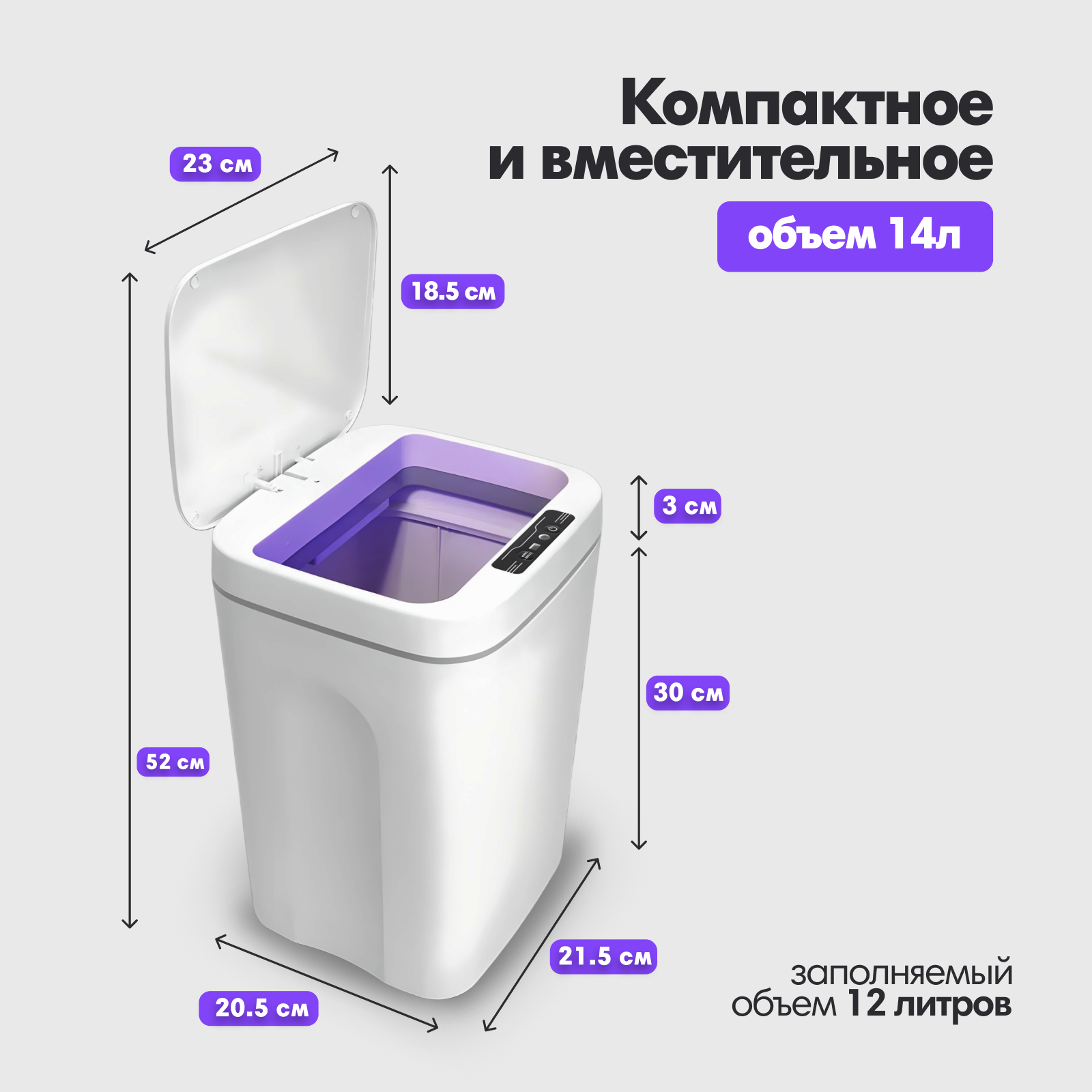 Сенсорное мусорное ведро с крышкой, 14 литров, белое информация: