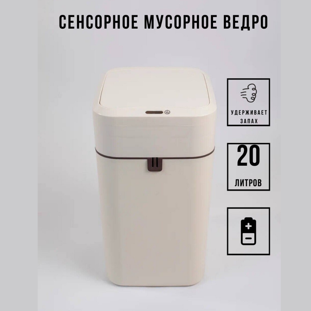 Сенсорное мусорное ведро, 20 литров, на батарейках, с функцией авто-расправления пакетов и подсветкой информация: