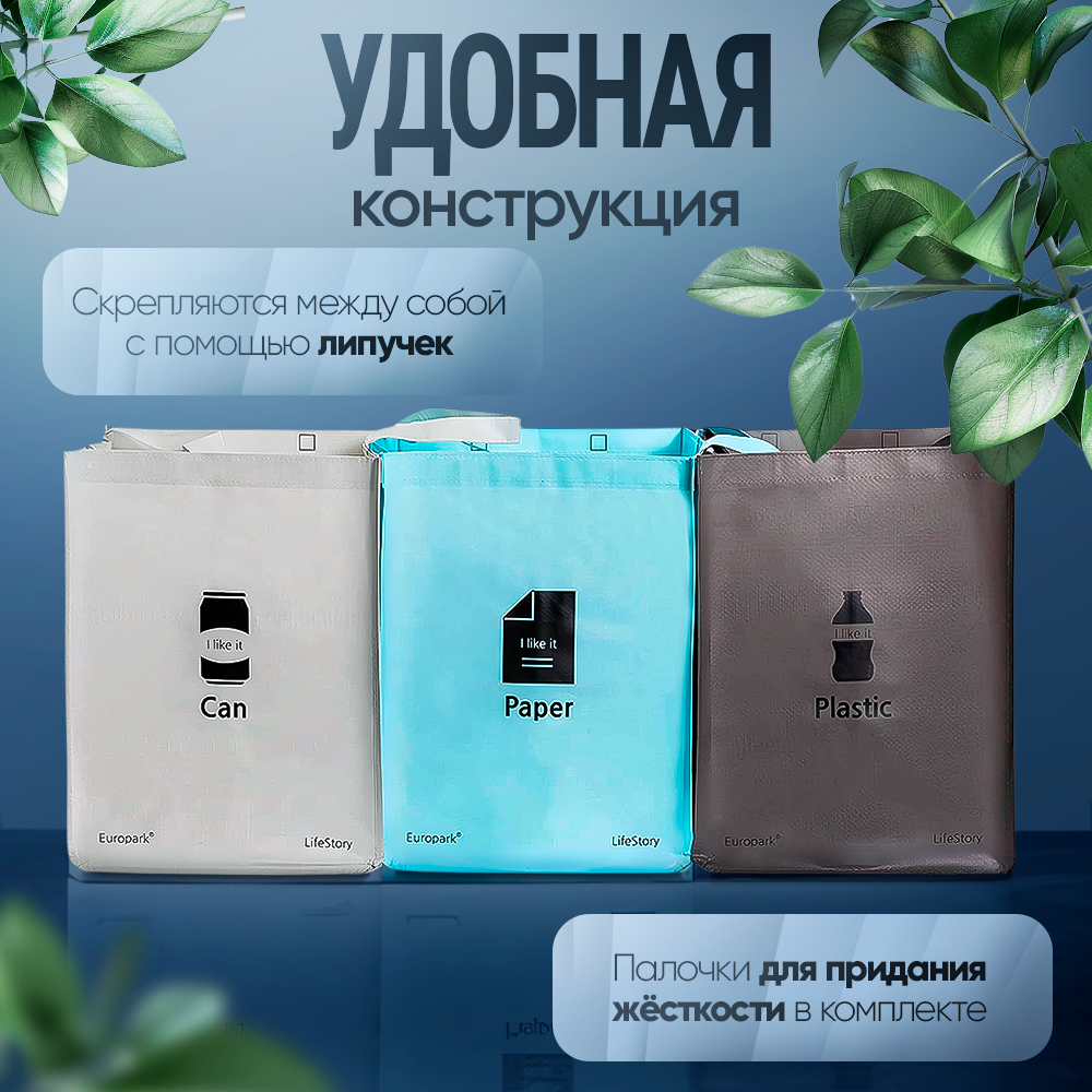 Комплект пакетов, ведер для раздельного сбора мусора 3 х 36 литров информация: