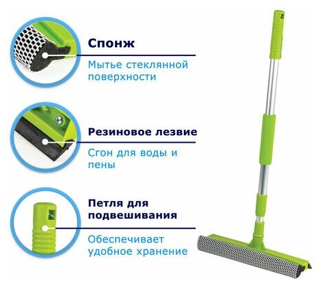 Отзывы на Комплект 6 шт, Окномойка любаша, алюминиевая телескопическая ручка 50-90 см, рабочая часть 25 см (стяжка, губка, ручка), 603613