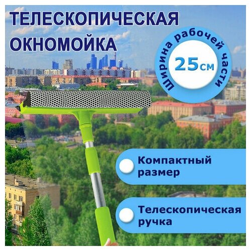 Окномойка, швабра для окон, алюминиевая телескопическая ручка 50-90см, ширина 25см, любаша, 880319