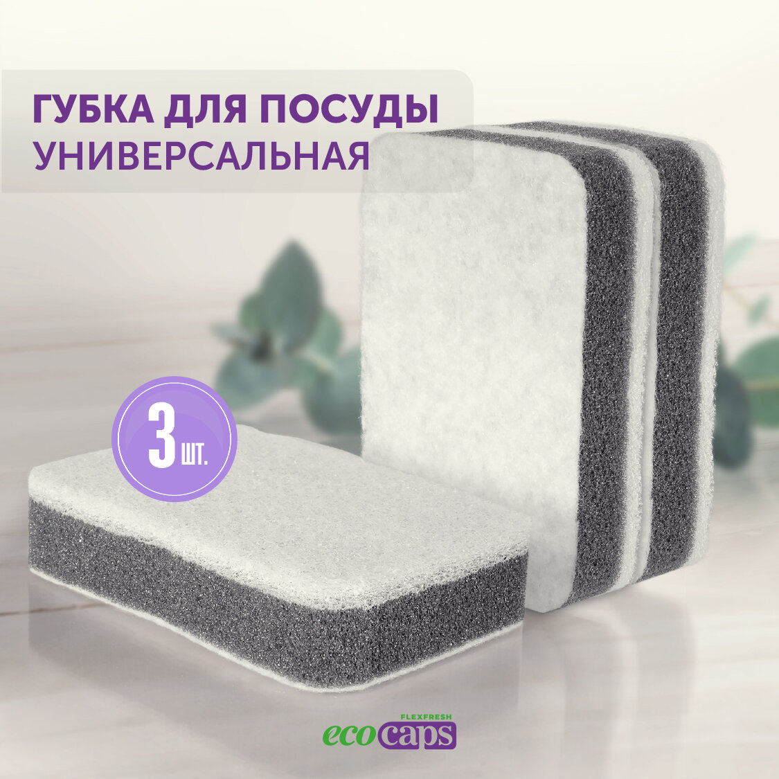 Губки EcoCaps для мытья посуды, ванны, кухни, в упаковке по 3 штуки информация: