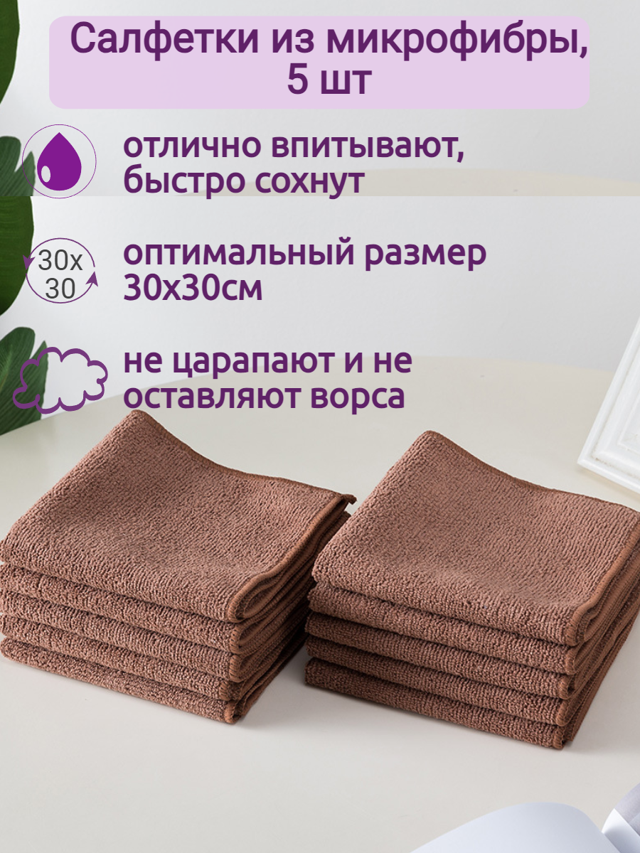 10 цен на набор салфеток из микрофибры коричневые для стола и уборки