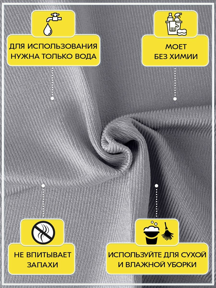 Салфетки для окон Nytta, серые, микрофибра, 30x30см, 2 штуки в упаковке 249 ₽