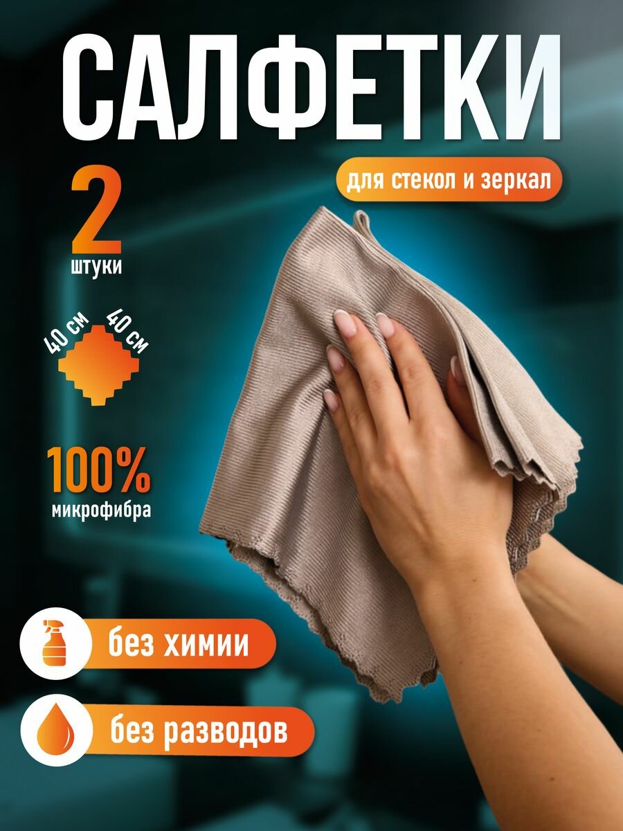 Салфетки для окон, серые, микрофибра, 30x30см, 2 штуки в упаковке 257 ₽