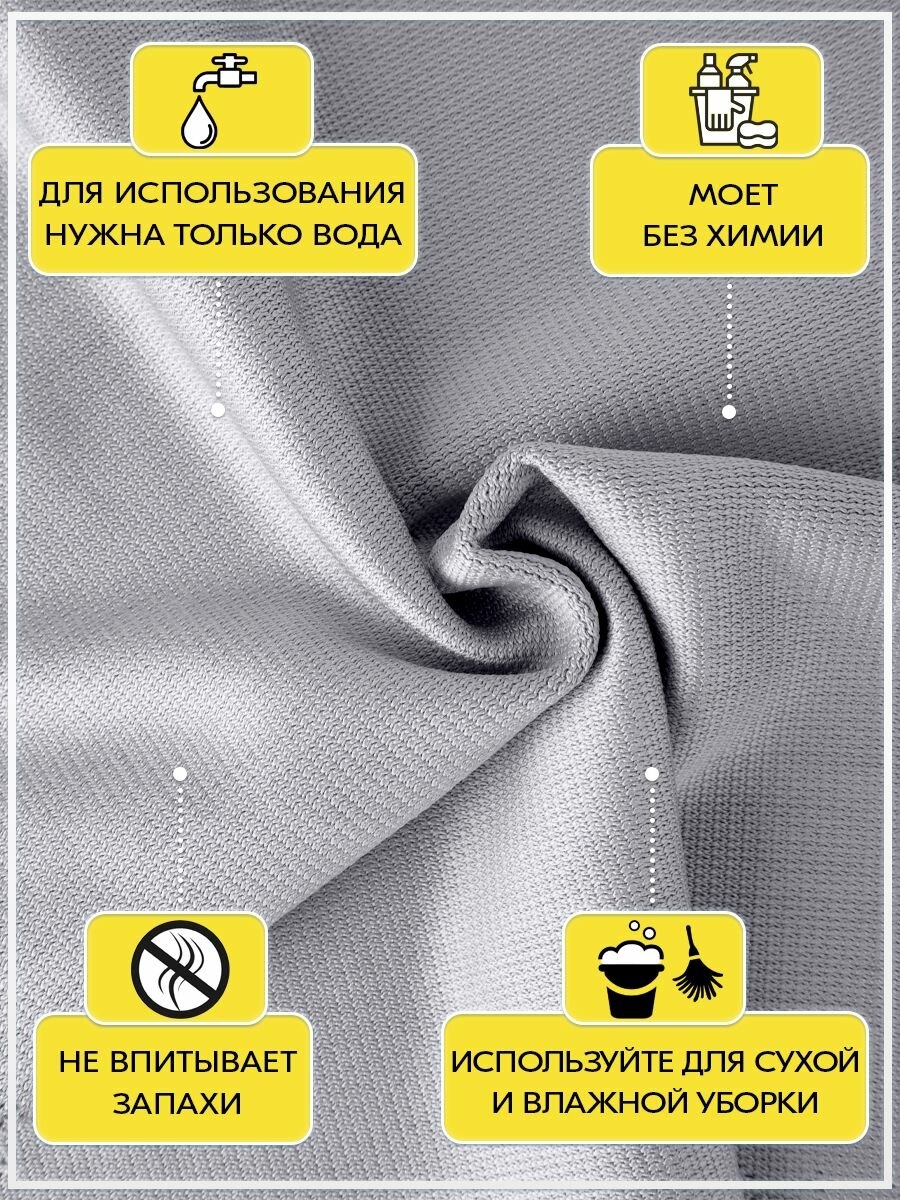 Салфетки для окон Nytta, серые, микрофибра, 30x30см, 2 штуки в упаковке информация: