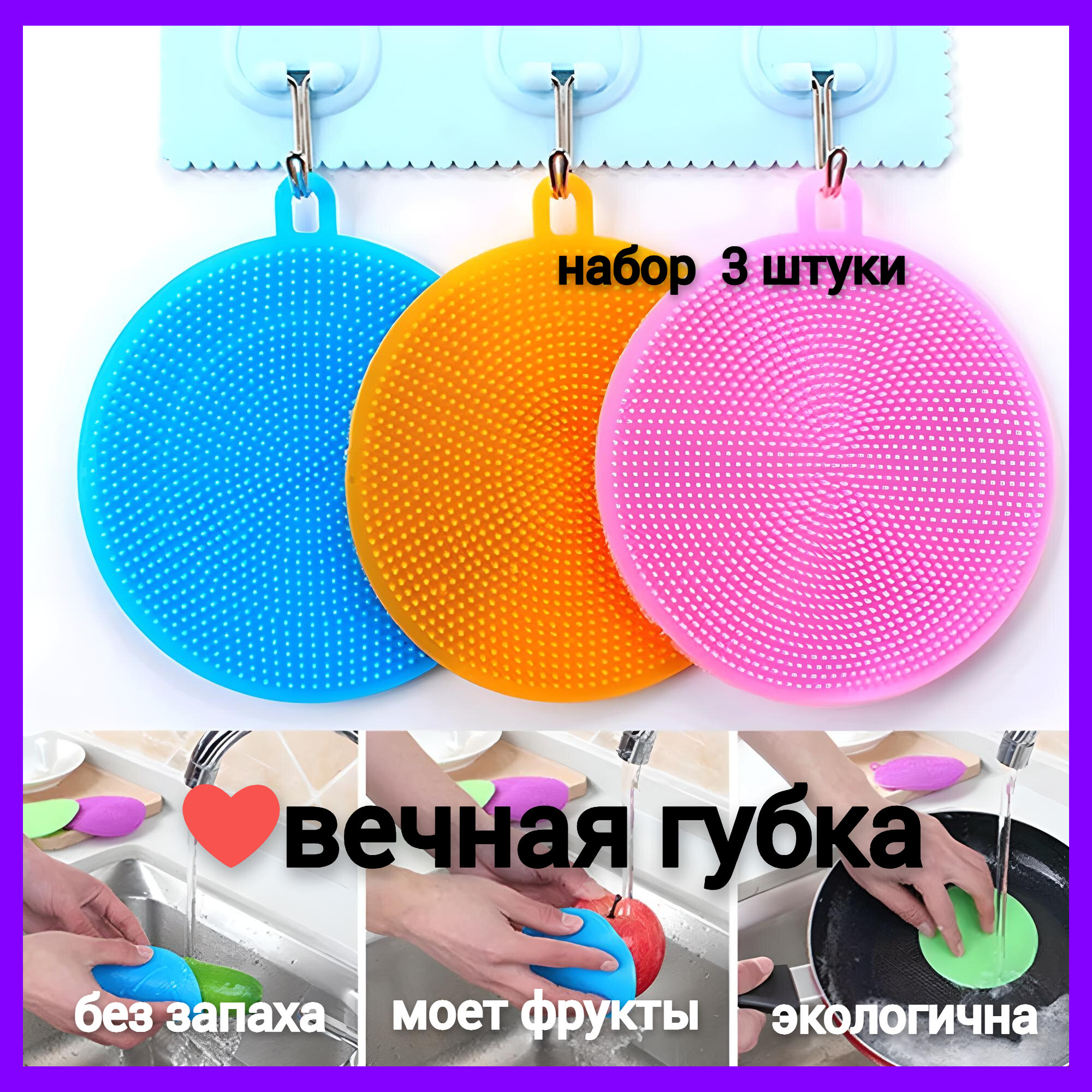 Отзывы на Набор из вечных универсальных силиконовых губок для мытья посуды и сантехники