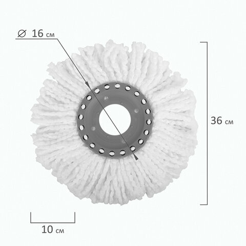 Комплект 10 шт, Насадка МОП круглая для швабры из набора для уборки, крепление кольцо, микрофибра, d-16 см, LAIMA, 601488 5 160 ₽
